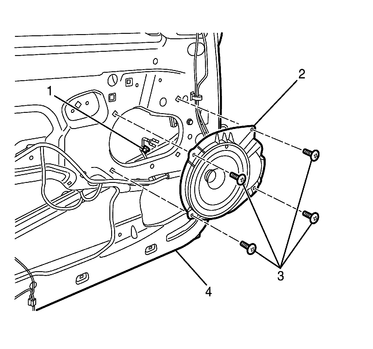 2. Remove the speaker assembly to door frame retaining screws (3).