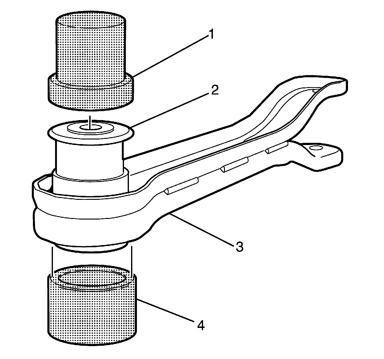 Important: It is recommended to observe the orientation and depth of the Y-Link bushing (2) with reference to the original position. Adhering to this recommendation will minimize the potential of incorrect Y-Link bushing (2) installation.