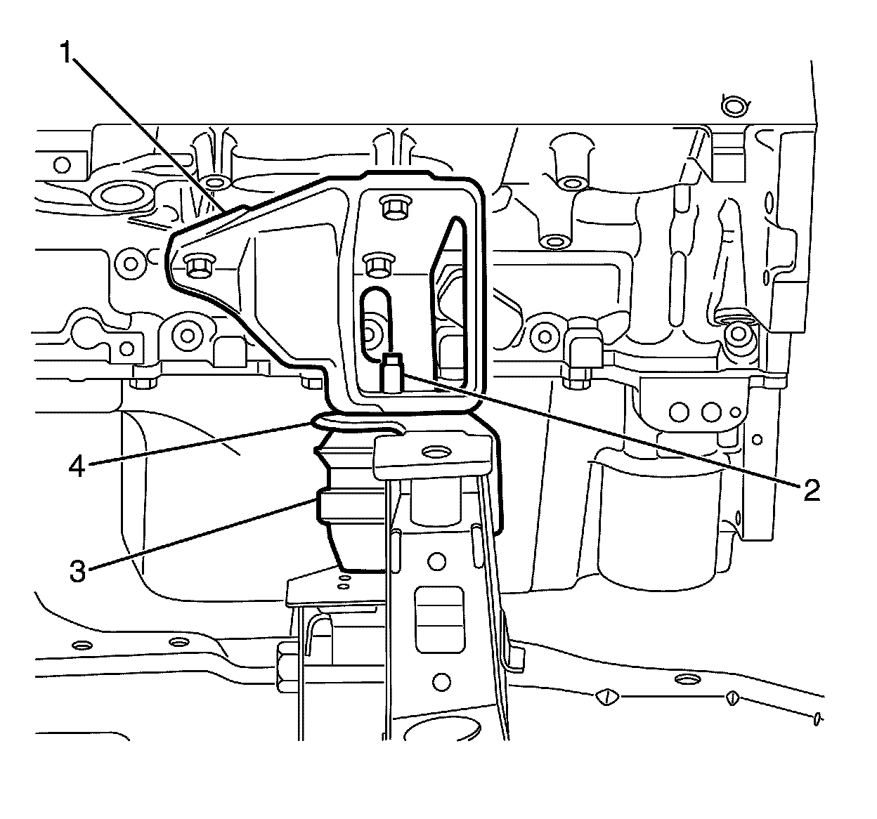1. Position the left side engine mount assembly (3).