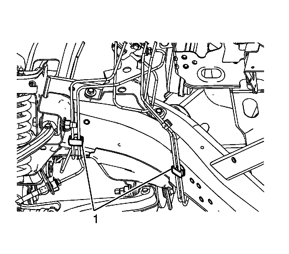 2. Release the brake pipe retainers (1) from the front LH frame rail.