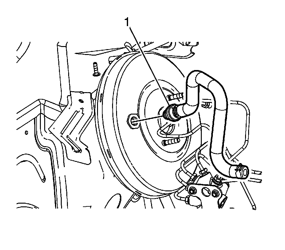 4. Disconnect the vacuum brake booster check valve and hose assembly (1) from the vacuum brake booster and position aside.