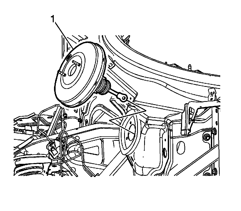 11. Pull the vacuum brake booster (1) forward until the studs clear the dash panel.