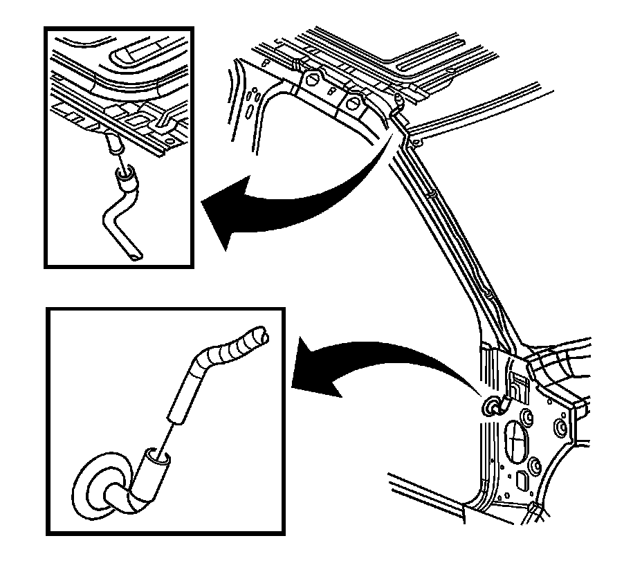 3. Disengage the sunroof drain hose from the attachment points on the windshield pillar.