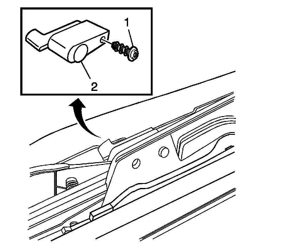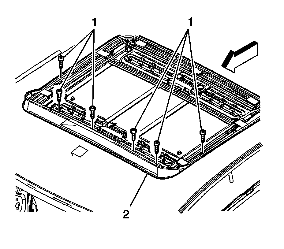 3. Install the screws (1) attaching the sunroof air deflector to the sunroof module (2).