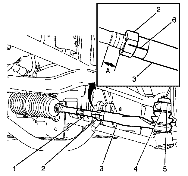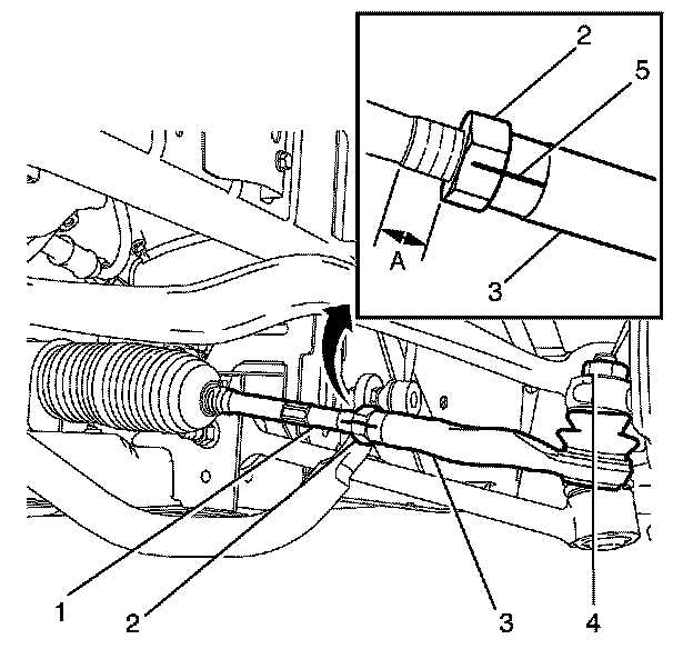 Note: To minimize the wheel alignment procedure the tie rod end (3) must be installed the distance (A) as was noted in the removal procedure.