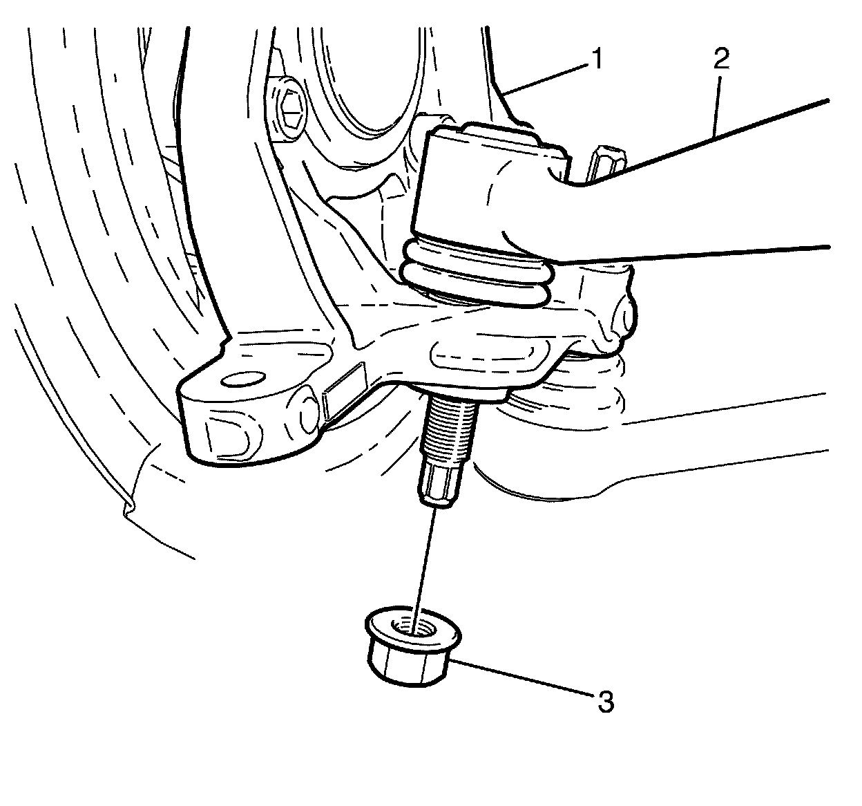 Install the NEW driver side caster arm to steering knuckle retaining nut (3).