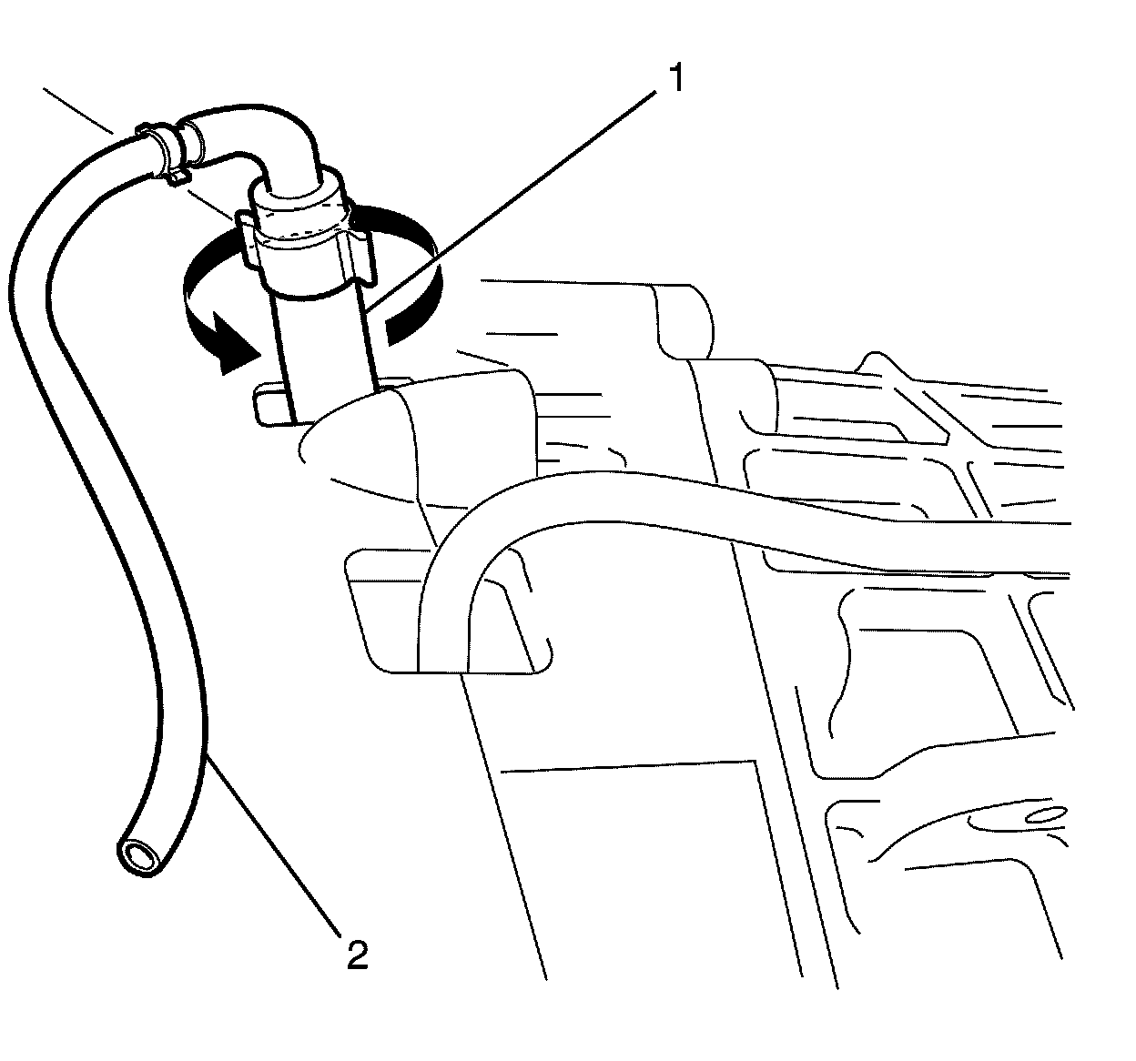 6. Connect one end of a rubber tube (2) to the concentric actuator cylinder bleed screw (1).