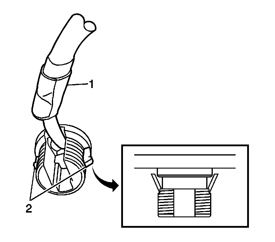 2. Place the antenna cable on the cut out on the antenna nut (1).