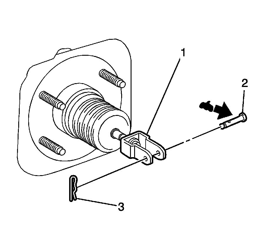 4. Remove the clip (3) from the push rod clevis pin (2).