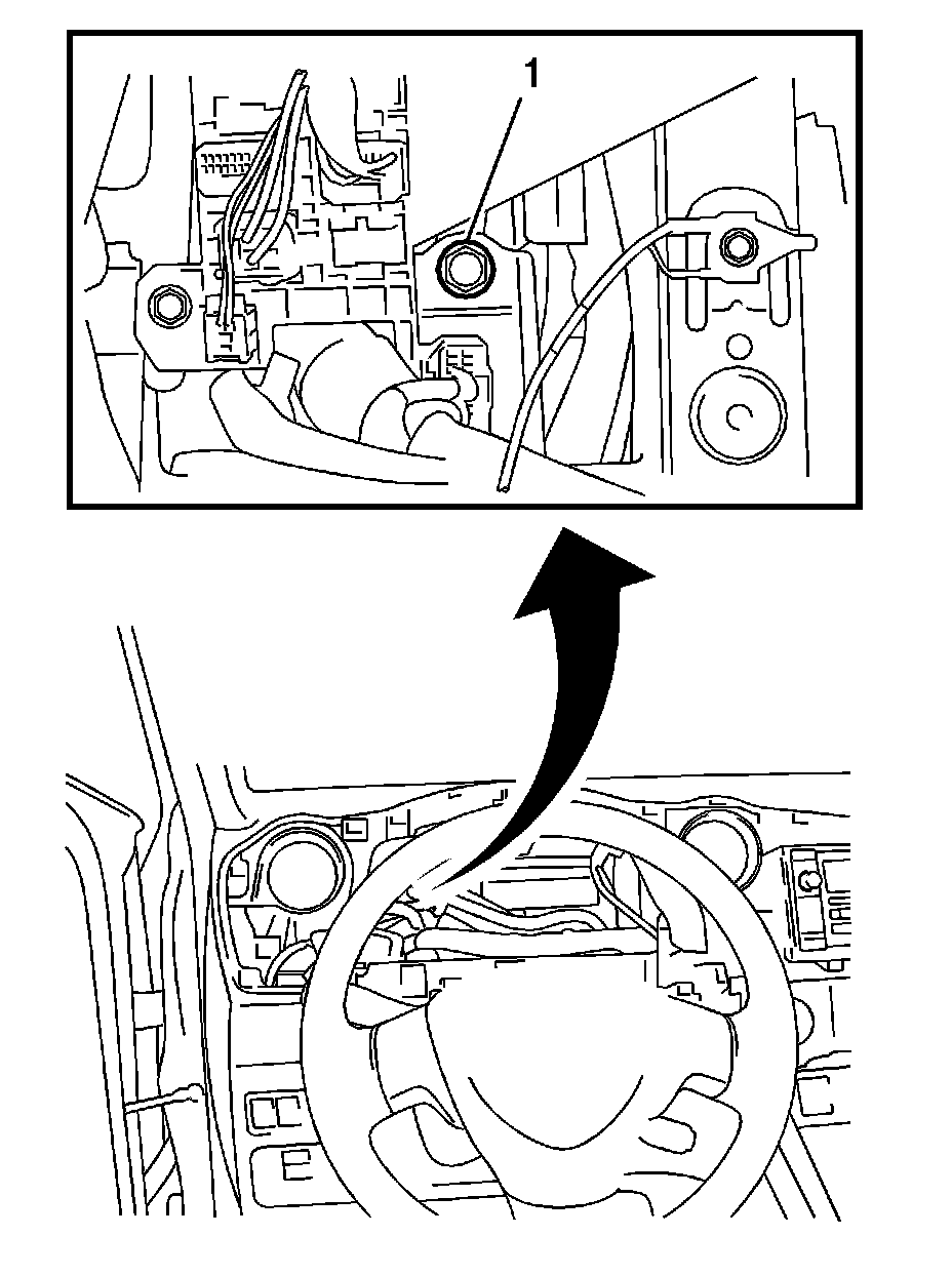 10. Remove the bolt (1) and separate the brake pedal support from the instrument panel reinforcement.