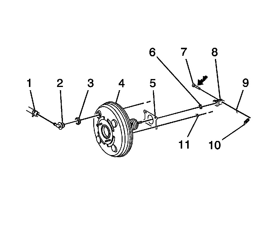1. With the engine OFF, press on the brake pedal several times in order to remove vacuum from the vacuum brake booster.
