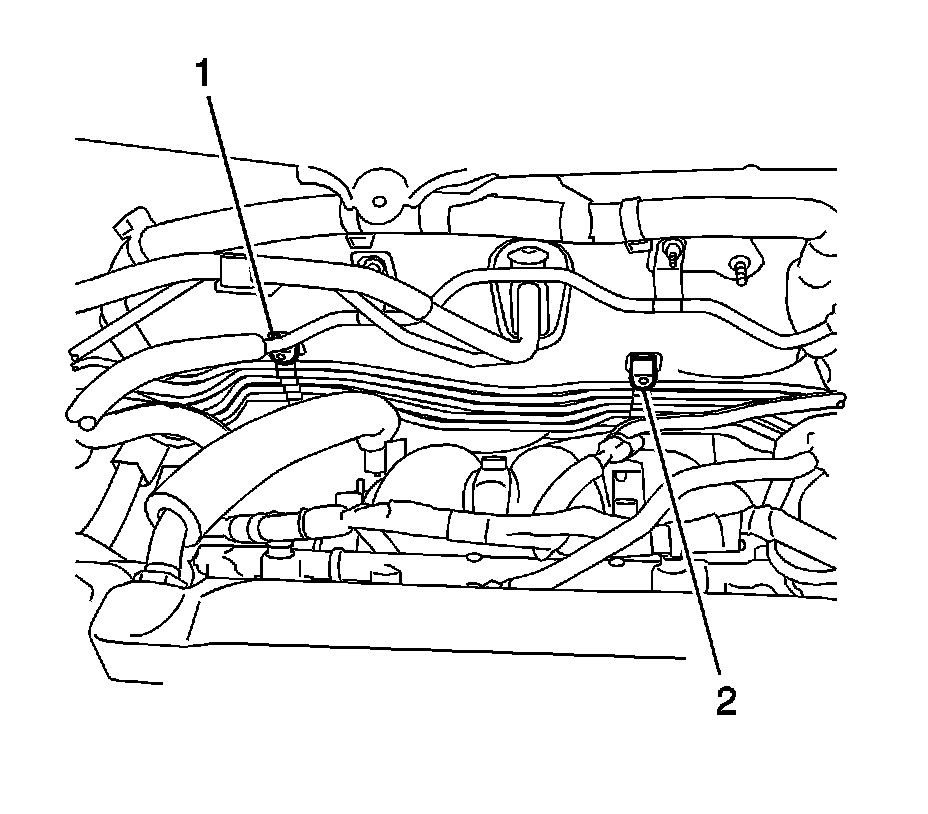 6. Loosen the hose clamp (1) and remove the vacuum hose from the check valve (2).