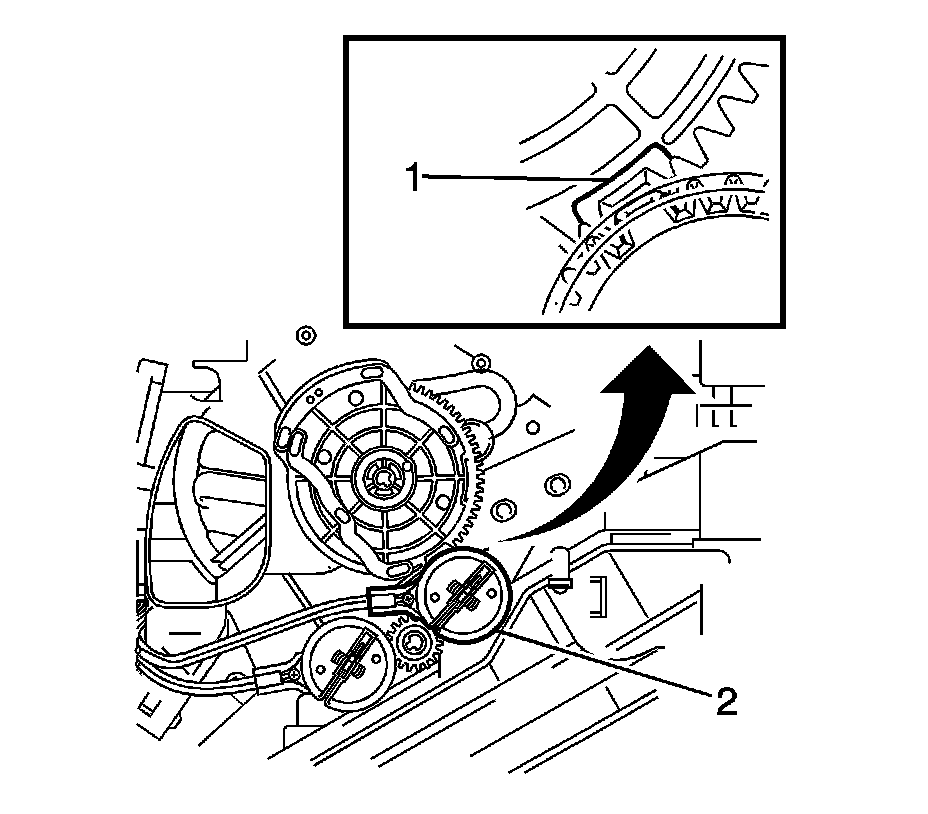 2. Position the gear (1) of the mode control cable (2) and the unit link to the HVAC module assembly.