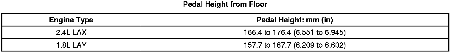 Push rod play at pedal top: 1.0 to 5.0 mm (0.039 to 0.197 in)