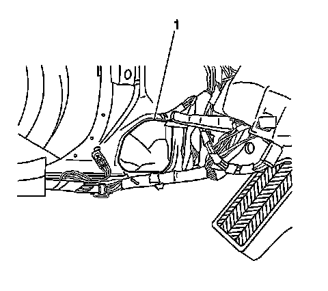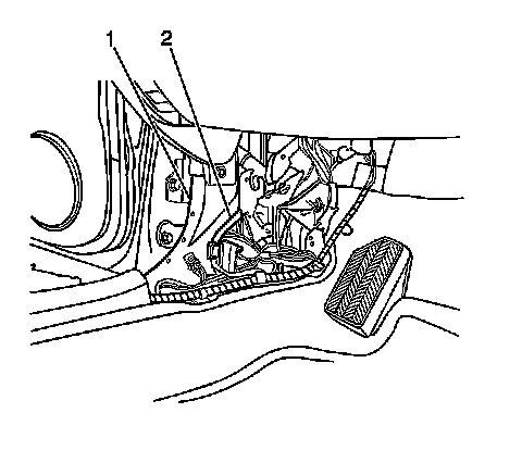 6. Remove the connector cavity (2) from the lower portion of the body hinge pillar panel (1).