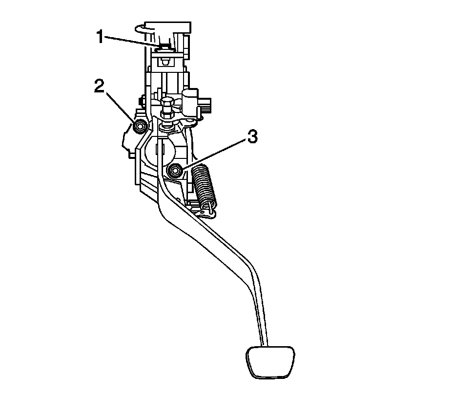 9. Install the clutch pedal sub-assembly to the clutch pedal support sub-assembly with the bolt and nut (1) and tighten to 37 Nm (27 lb ft).
