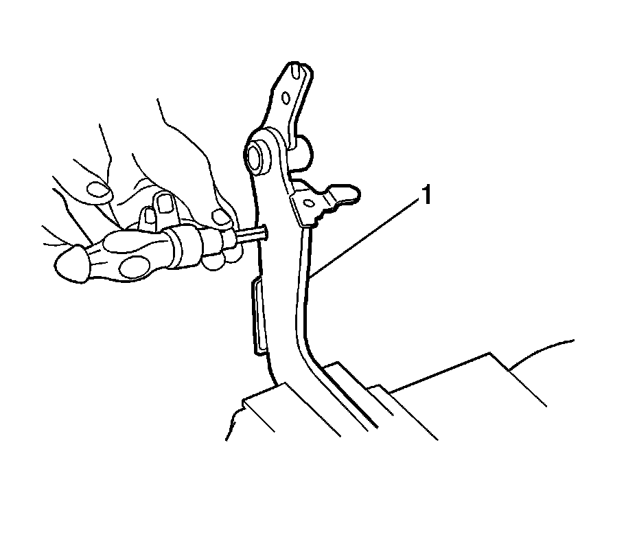 17. Using an 8 mm hexagon wrench and a hammer, remove the clevis bushing from the clutch pedal sub-assembly (1).