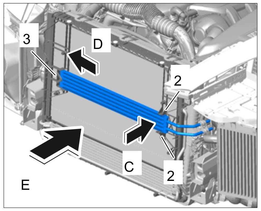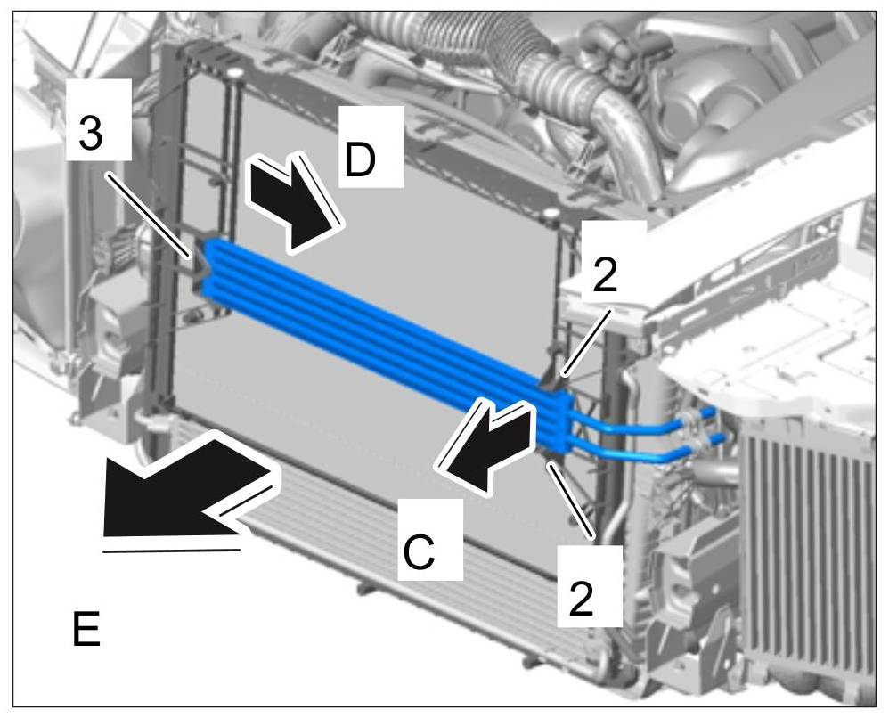 5. Pull power-steering cooler to the left -D- out of the bracket -3-.