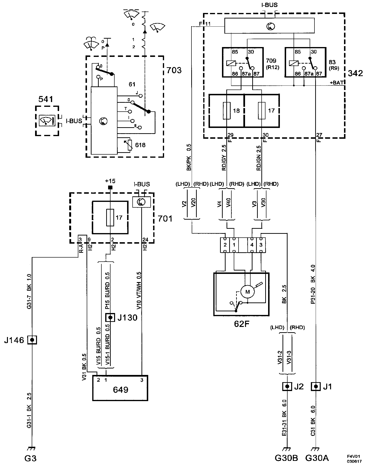 Power Supply Diagrams: The diagrams for the power supplies that may be feeding this system (+30, +15, +54, +X and +B) can be found at Power and Ground Distribution diagrams. Electrical Diagrams