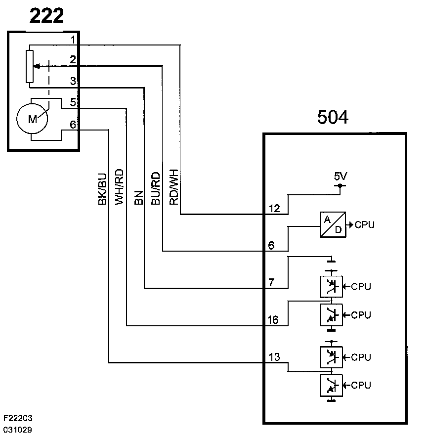 The position sensor consists of a potentiometer with a 5 V feed from MCC pin 12 to potentiometer pin 1 and which is connected to ground via pin 3 from MCC unit pin 7.