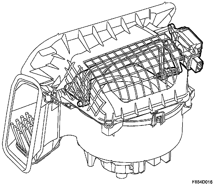 The motor is connected to MCC unit pins 15 (K42) and 14 (K42). The output polarity is reversed in order to change motor rotation direction. The MCC unit applies a B+ feed on pin 15 and grounds pin 14 in order to operate the motor for fresh air setting and conversely in order to operate the motor for cabin air retrieval.