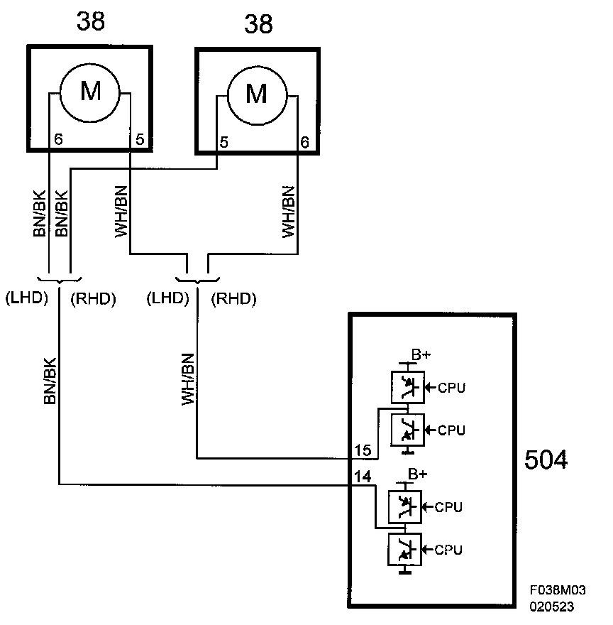 Connection, motor/MCC unit for RHD car: MCC unit pin 15 towards motor pin 6 MCC unit pin 14 towards motor pin 5 Illustration interface