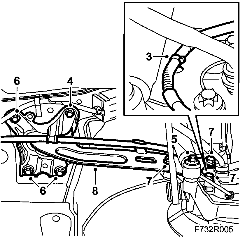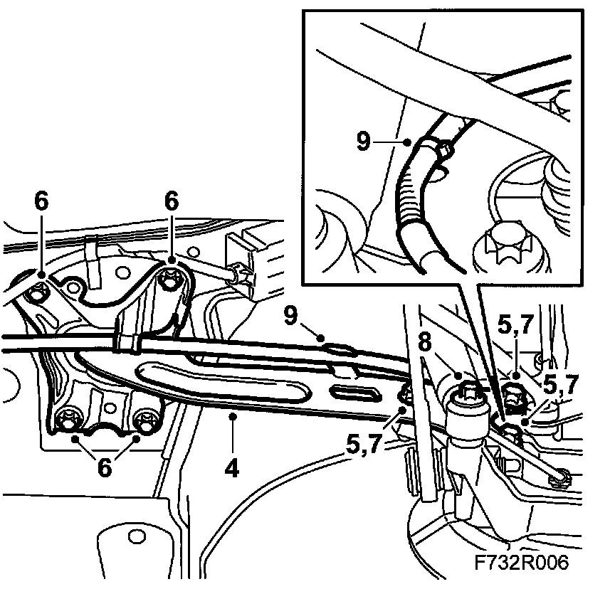 6. Fit the longitudinal link front bracket to the holder for the parking brake cable.