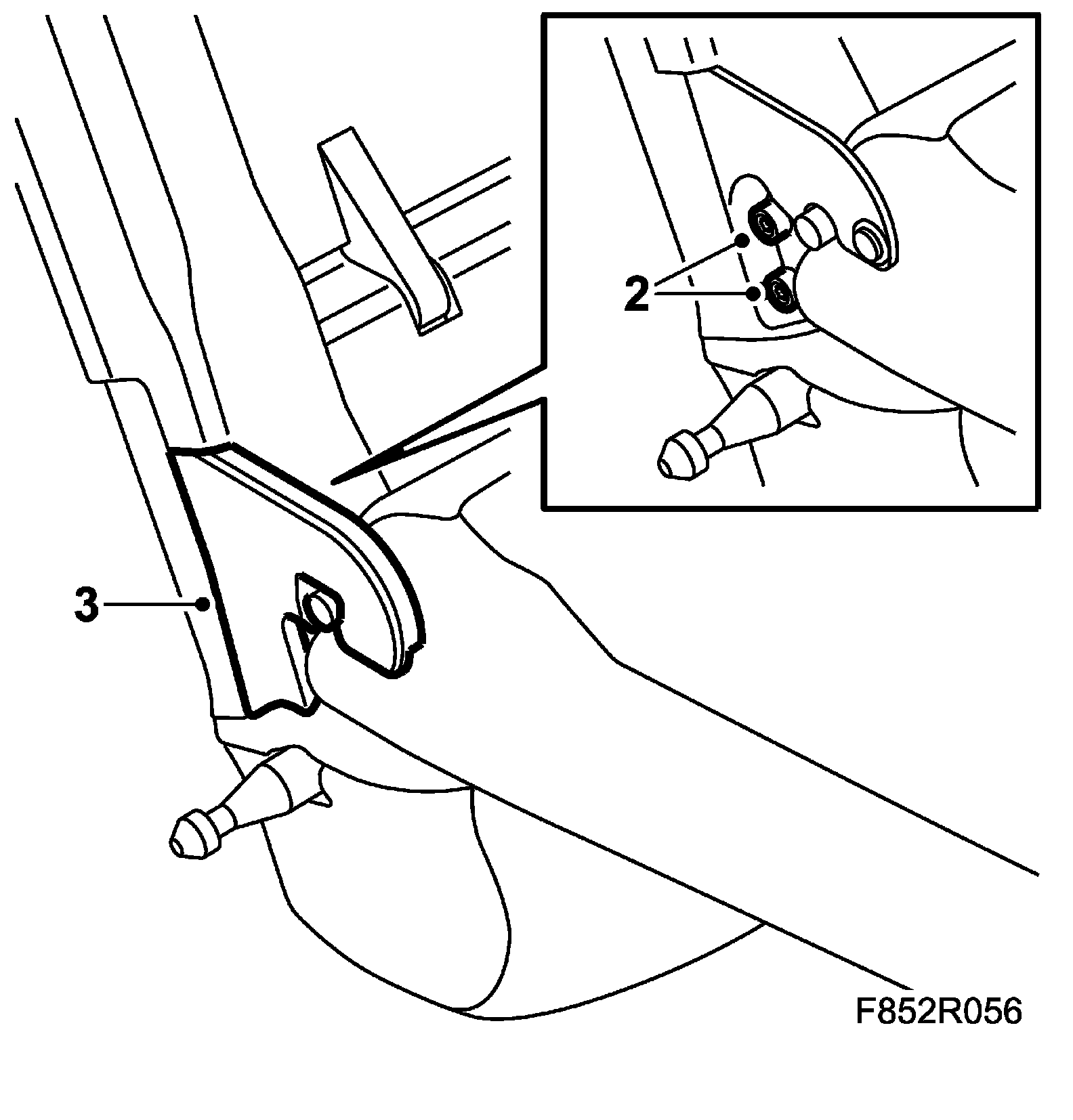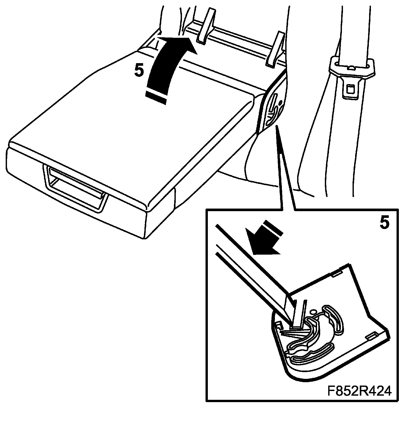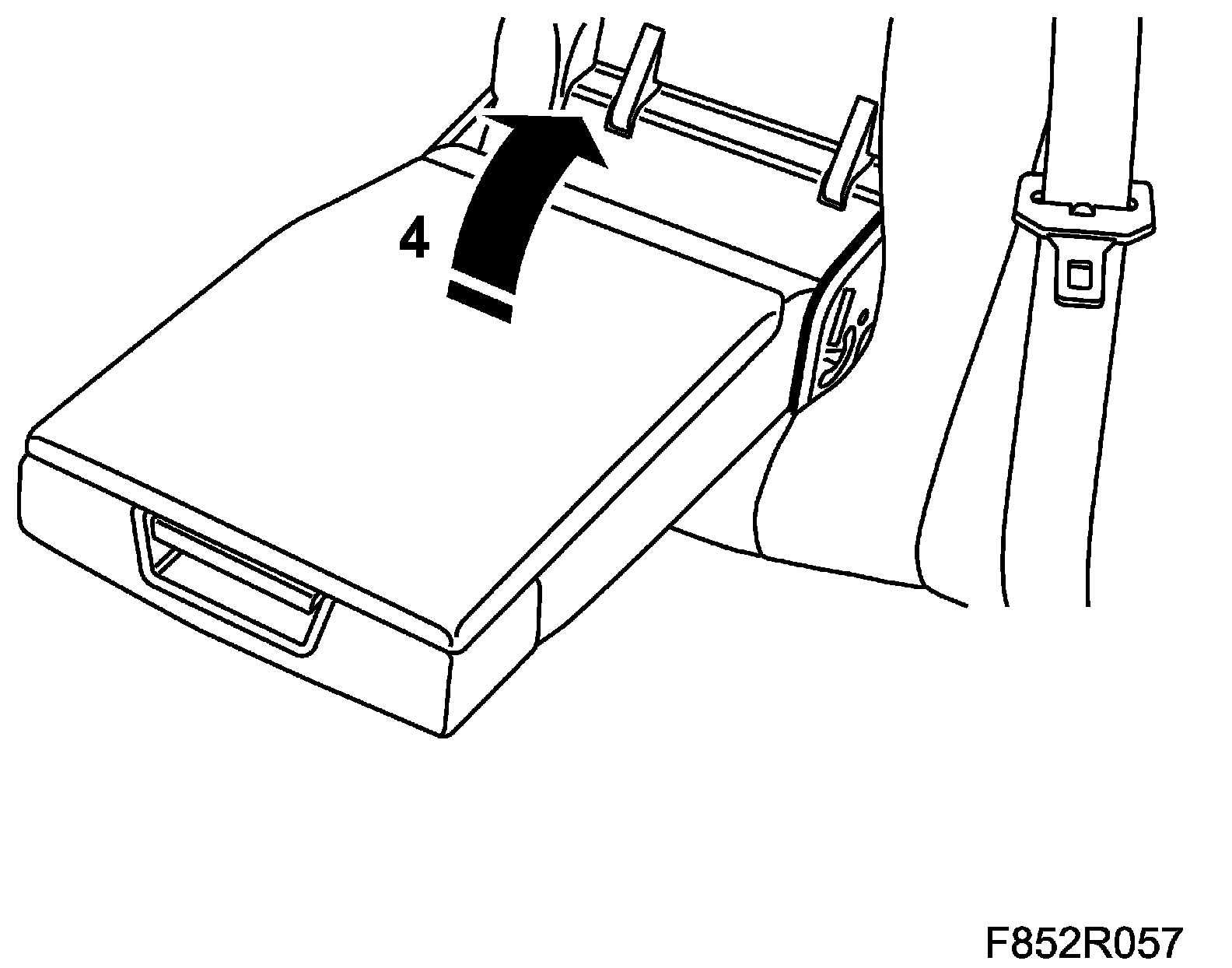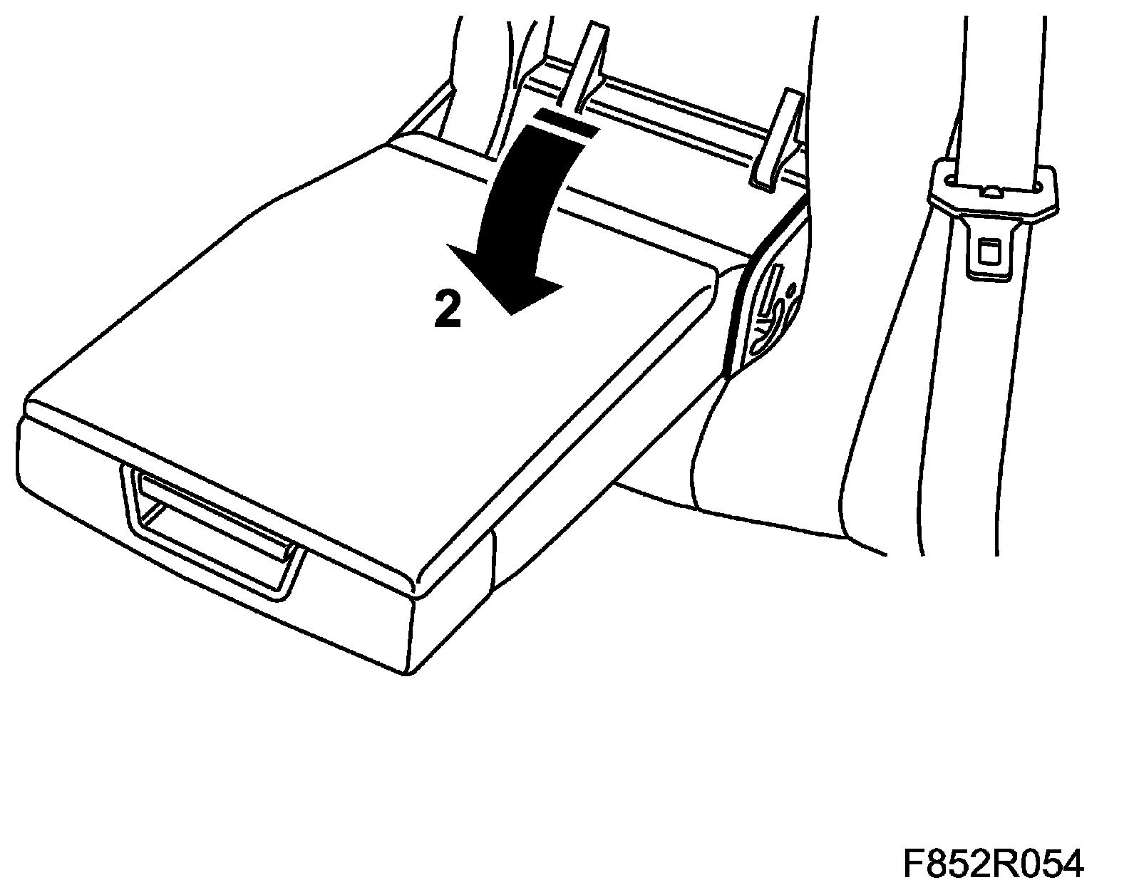 1. Fit the rear seat armrest by holding the armrest at an angle of roughly 45 degrees and guiding it into position.