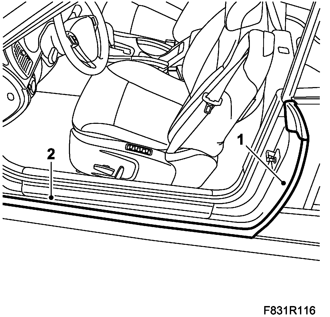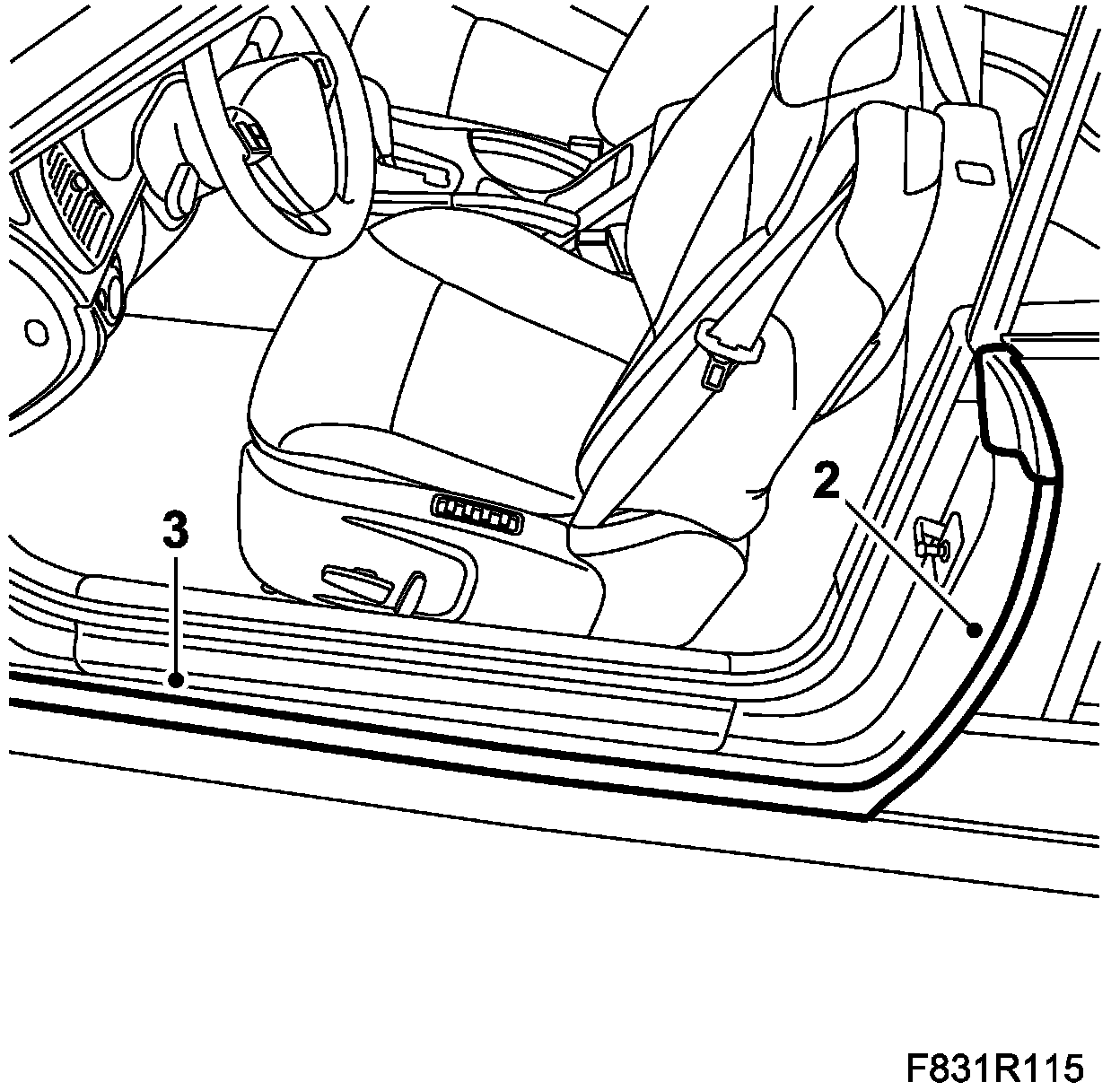 2. Remove the rear section of the door seal with clips.