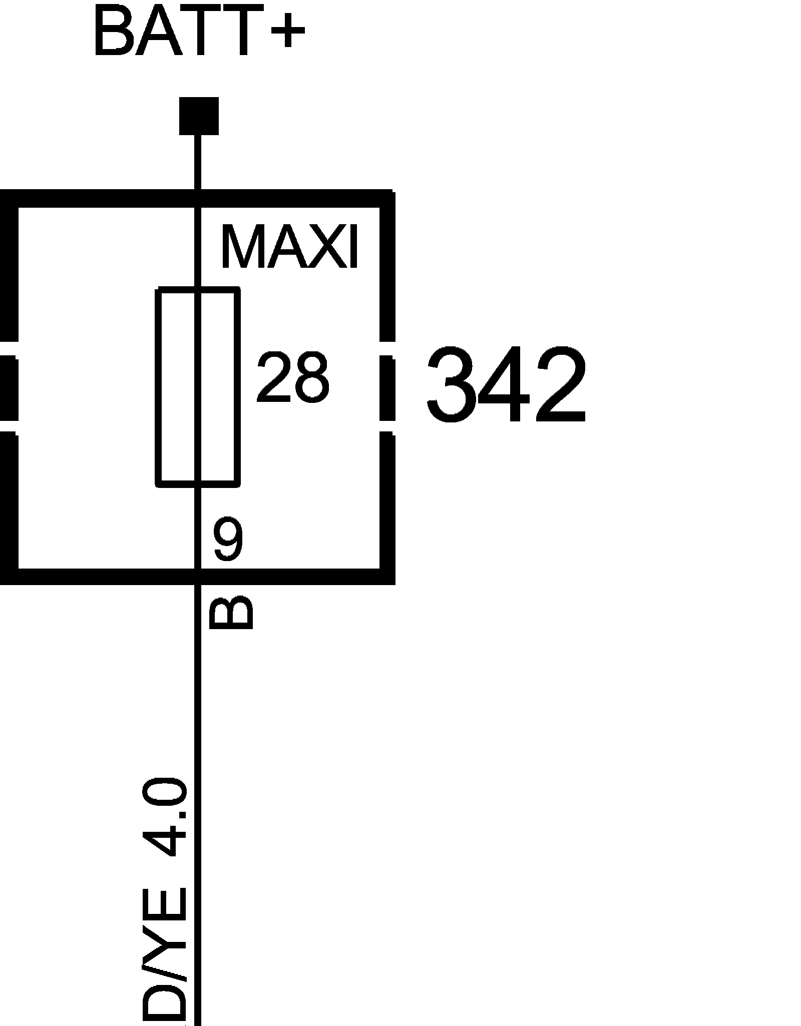 c��Fuse 28, engine bay electrical center 342, maxi fuse:
