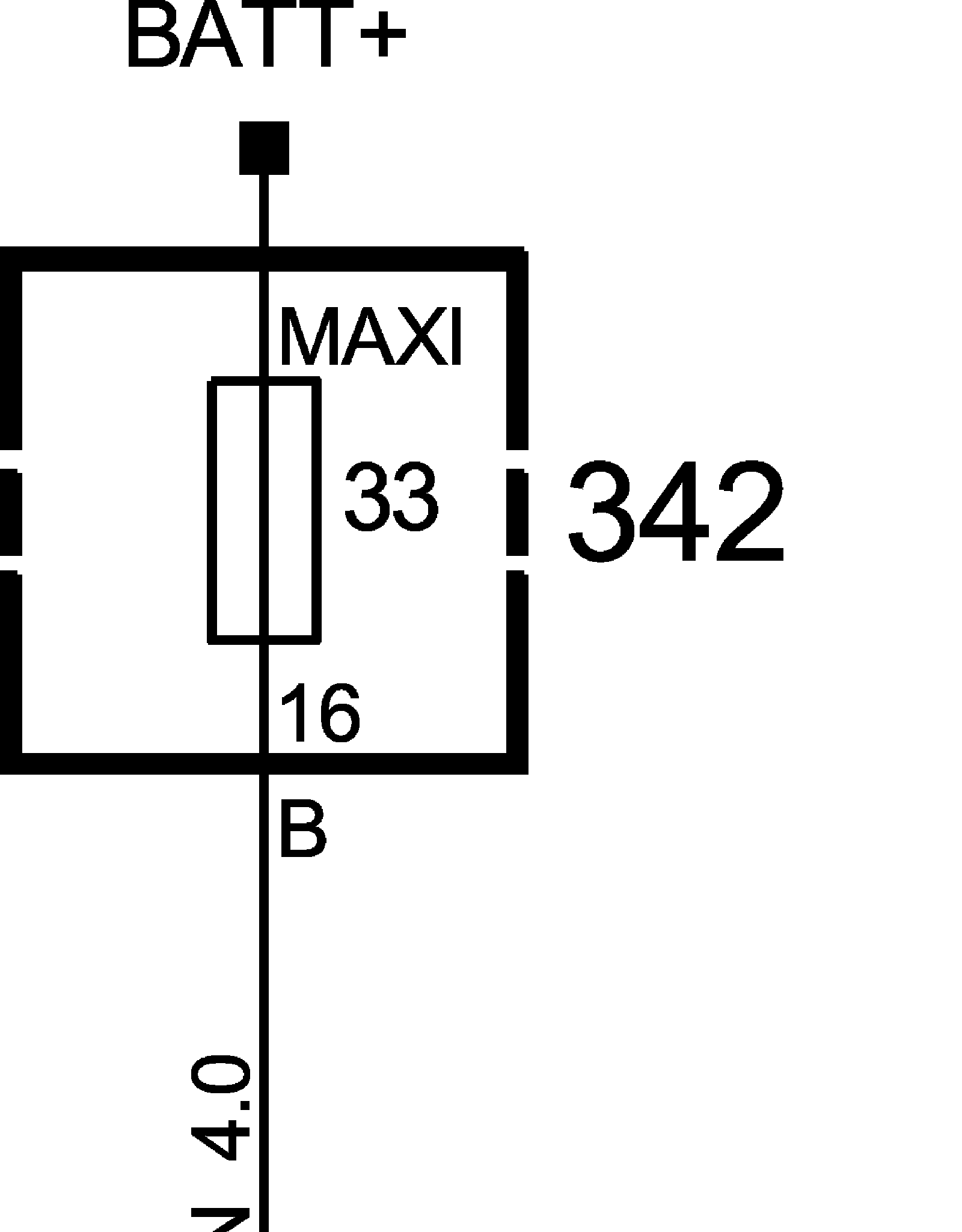Fuse 33, engine bay electrical center 342, maxi fuse: