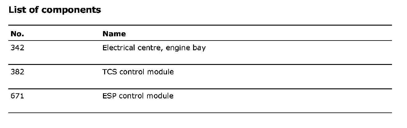 The electrical center can contain a greater number of relays than those listed below. In such cases, these are not connected to a wiring harness.