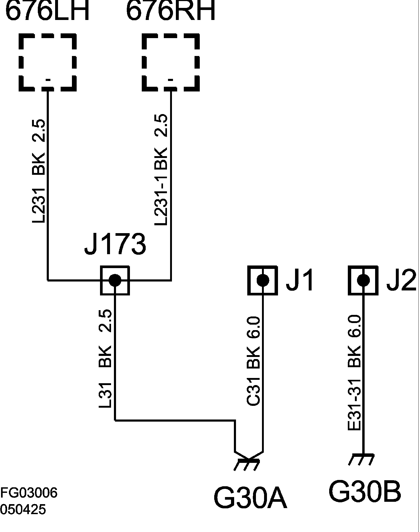 The grounding point is connected with grounding point G30A via crimp 32, under hood electrical center 342 and crimp 31.