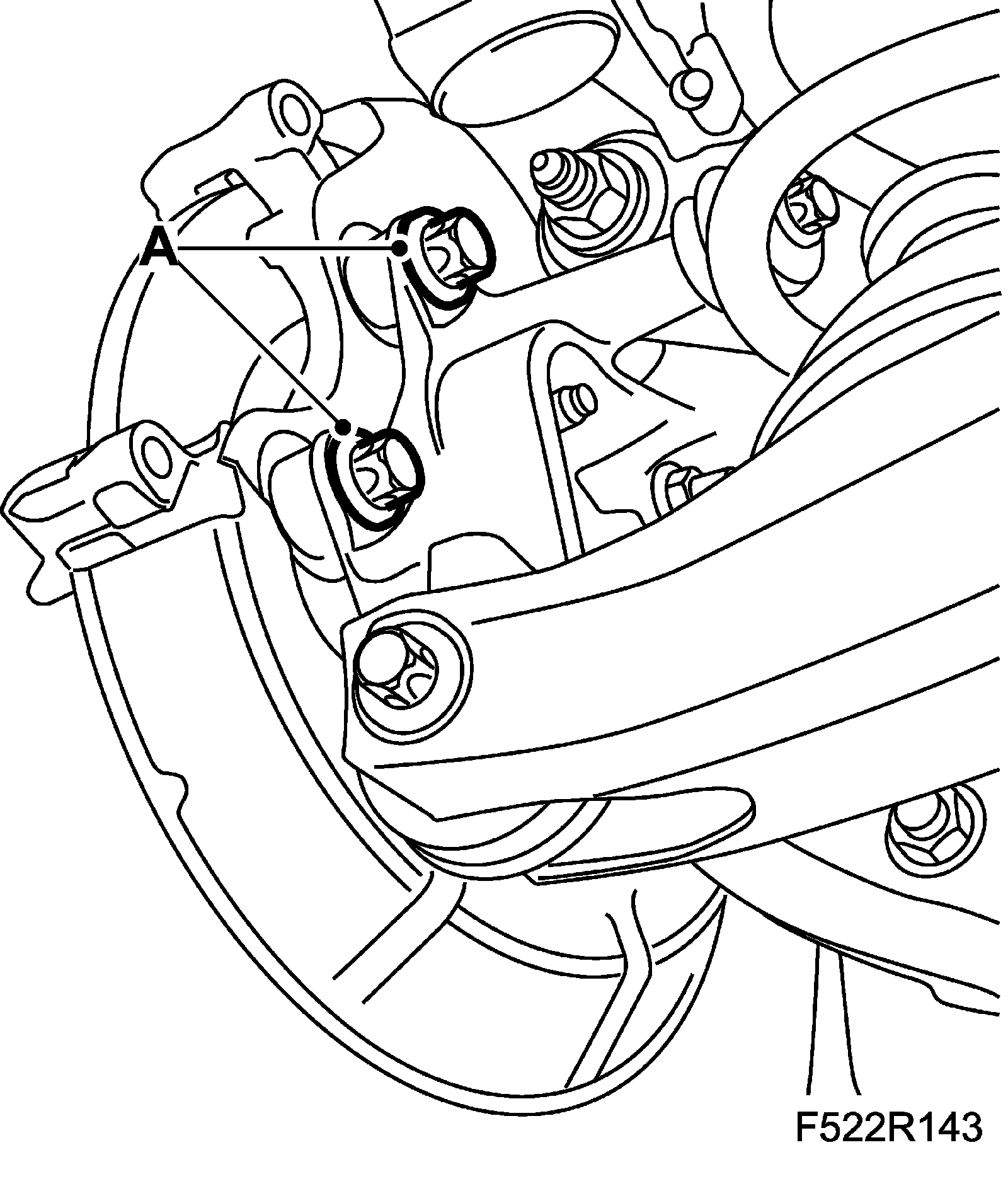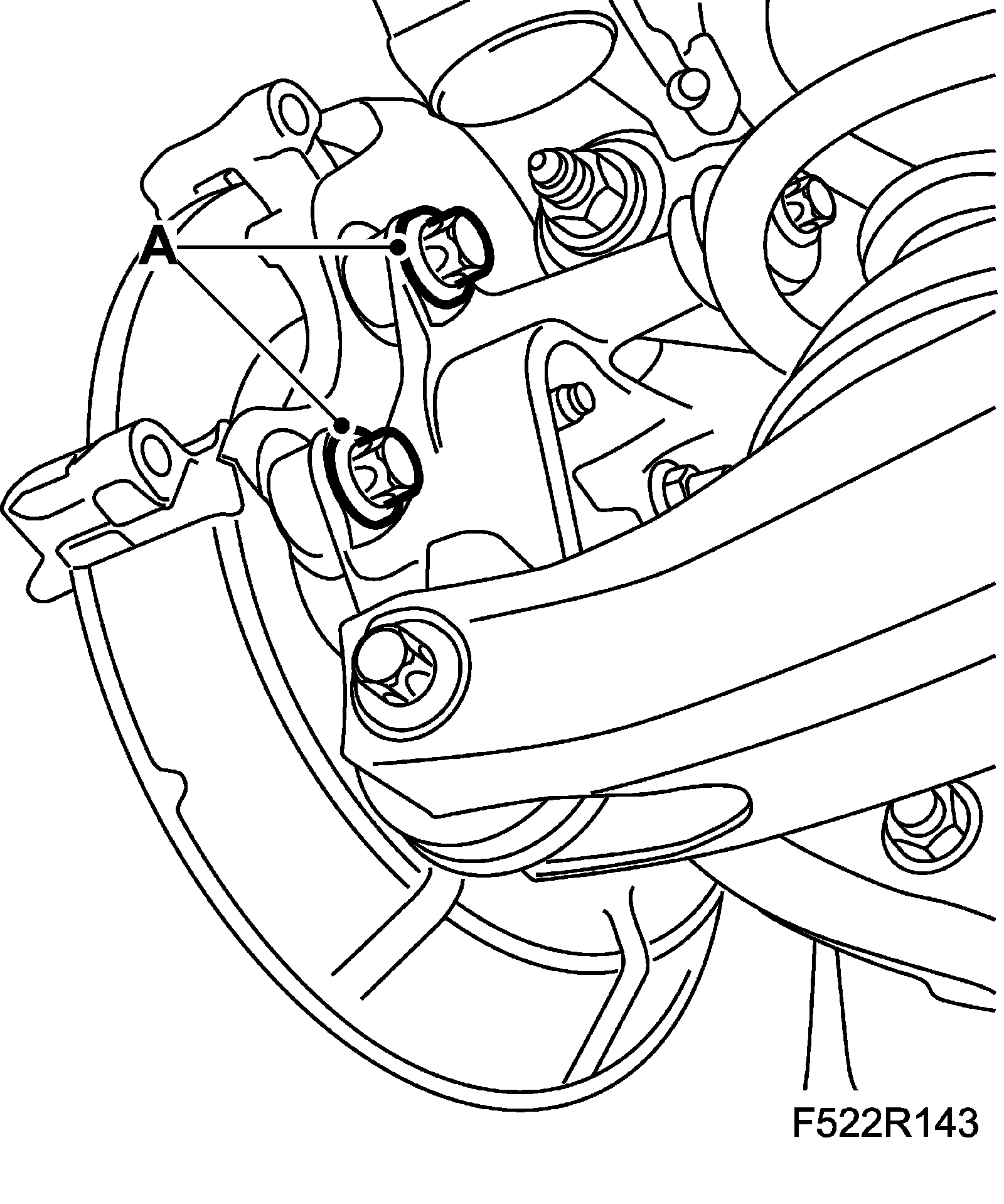 Fit the brake caliper holder to the steering swivel member (A). Apply 74 96 268 Thread locking adhesive to the bolts.