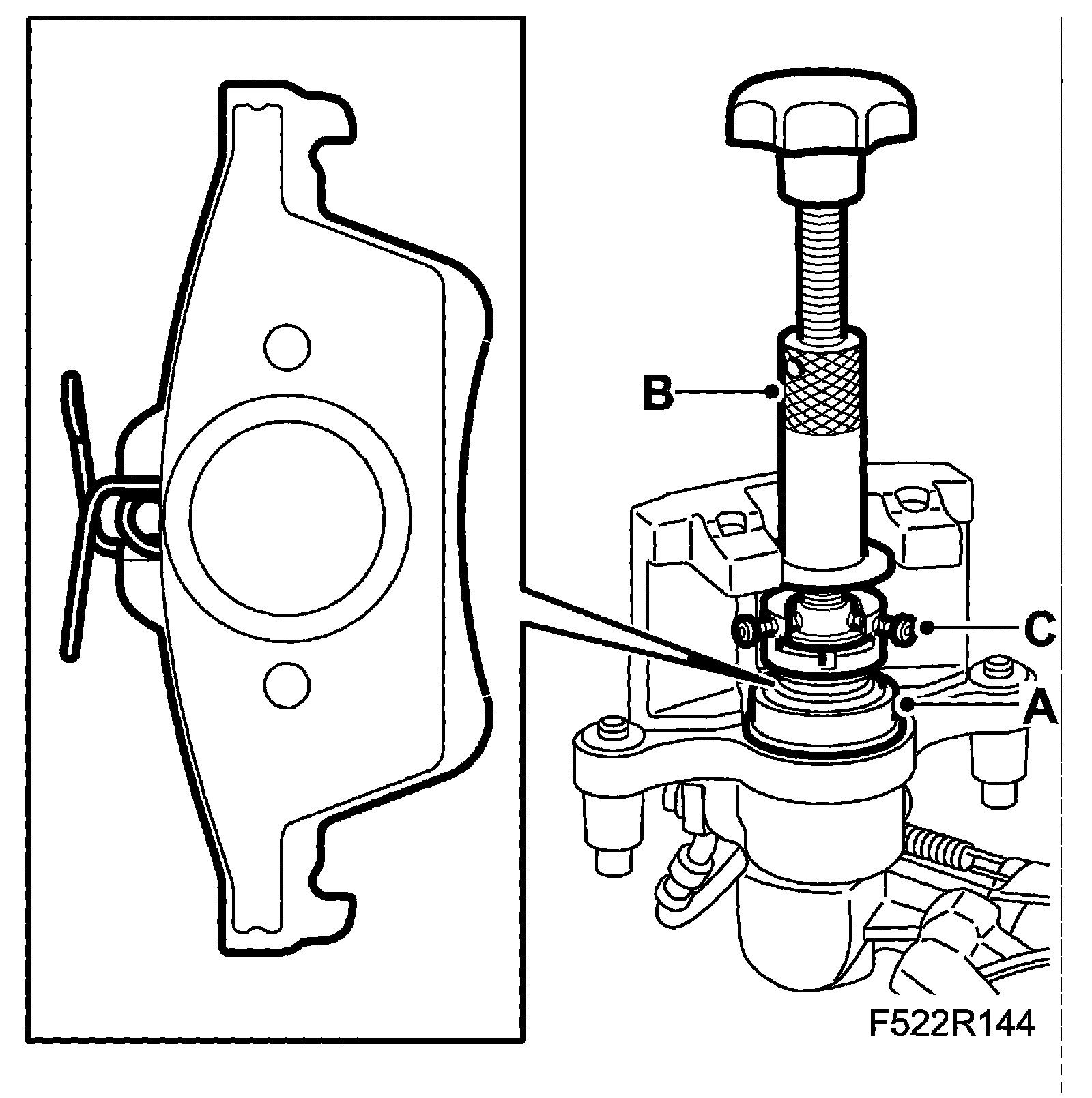 3. Screw in the brake piston (A) if necessary with 89 96 969 Resetting tool (B) and 89 96 977 Adapter (C).