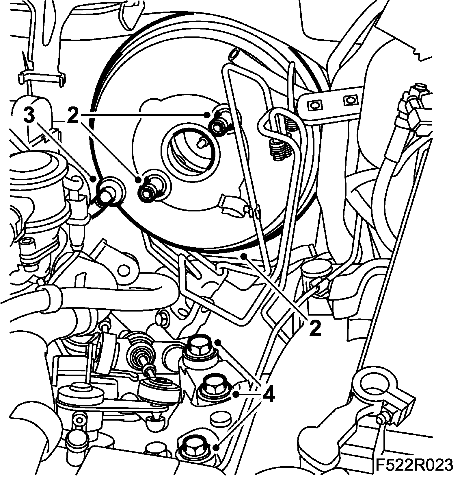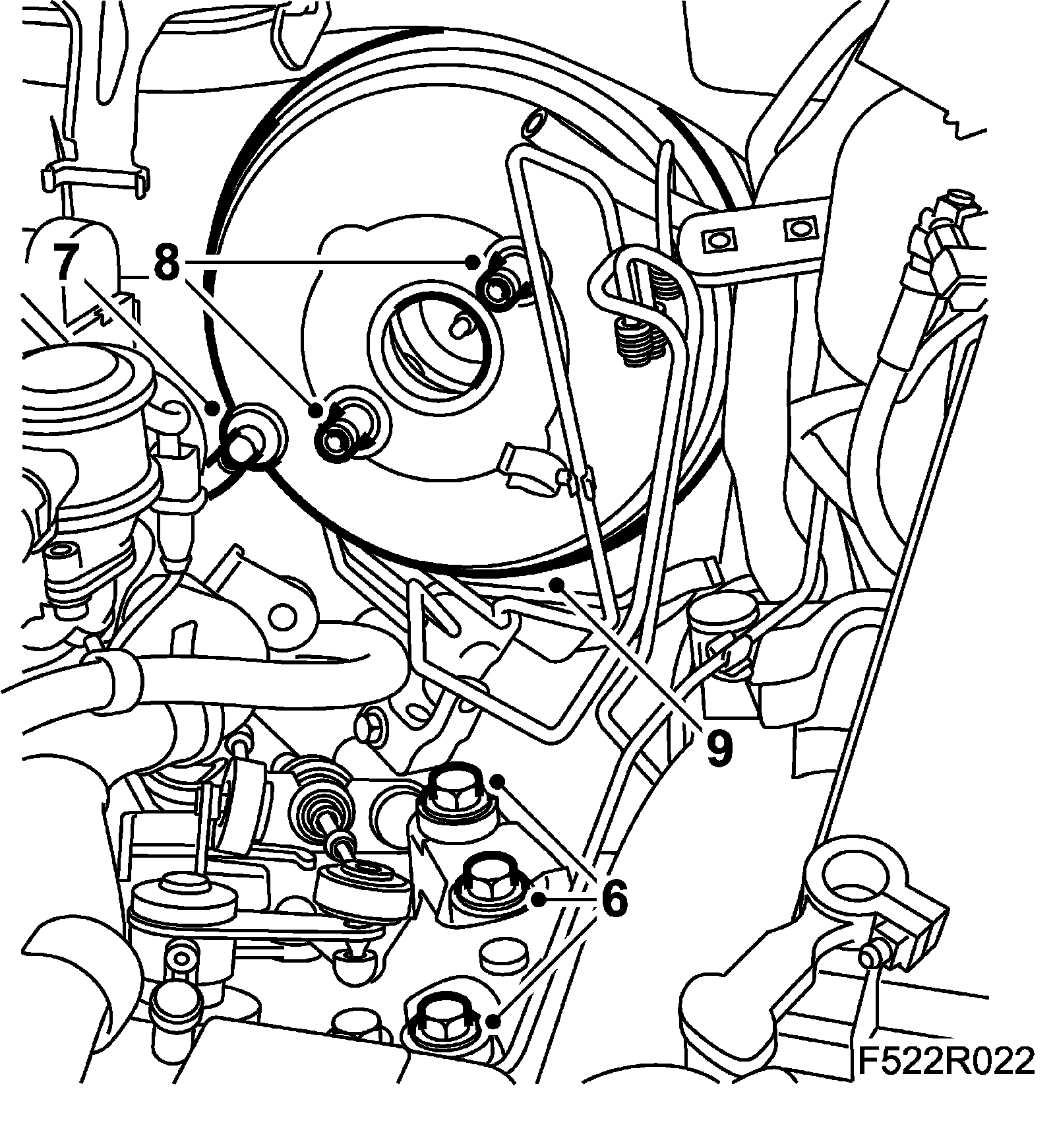2. Put the brake servo in place. Secure the brake servo bolts with 74 96 268 Thread locking adhesive Fit the brake servo bolts.