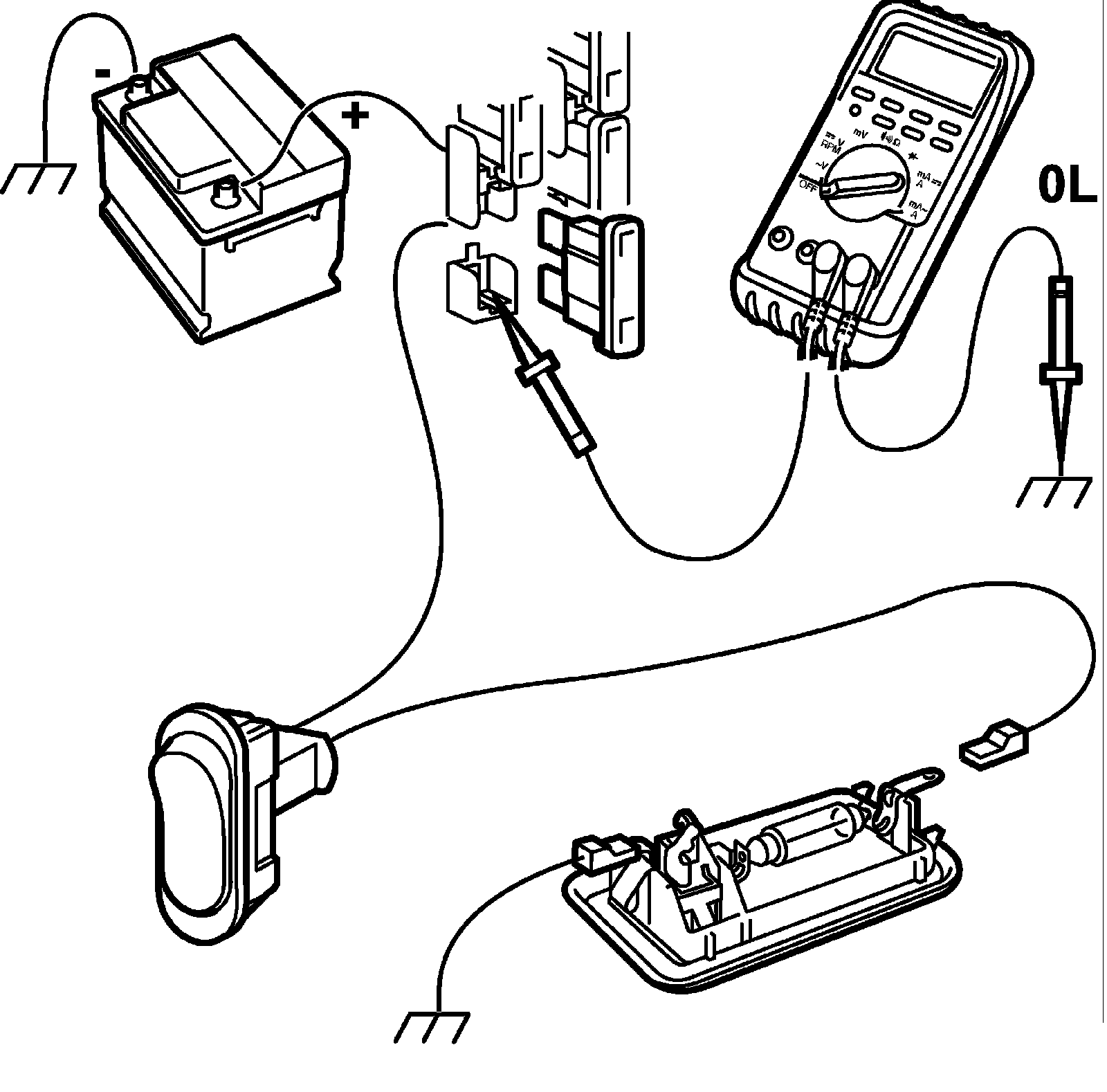 4. Carefully jiggle the wiring harness and make sure the multimeter reading shows infinite resistance (OL) all the time.