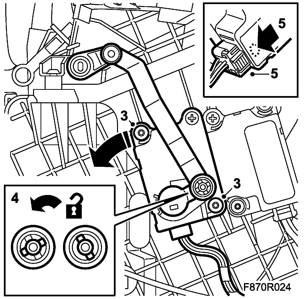 5. Dismantle the stepping motor's connector by pressing in the lock and pulling out the connector.