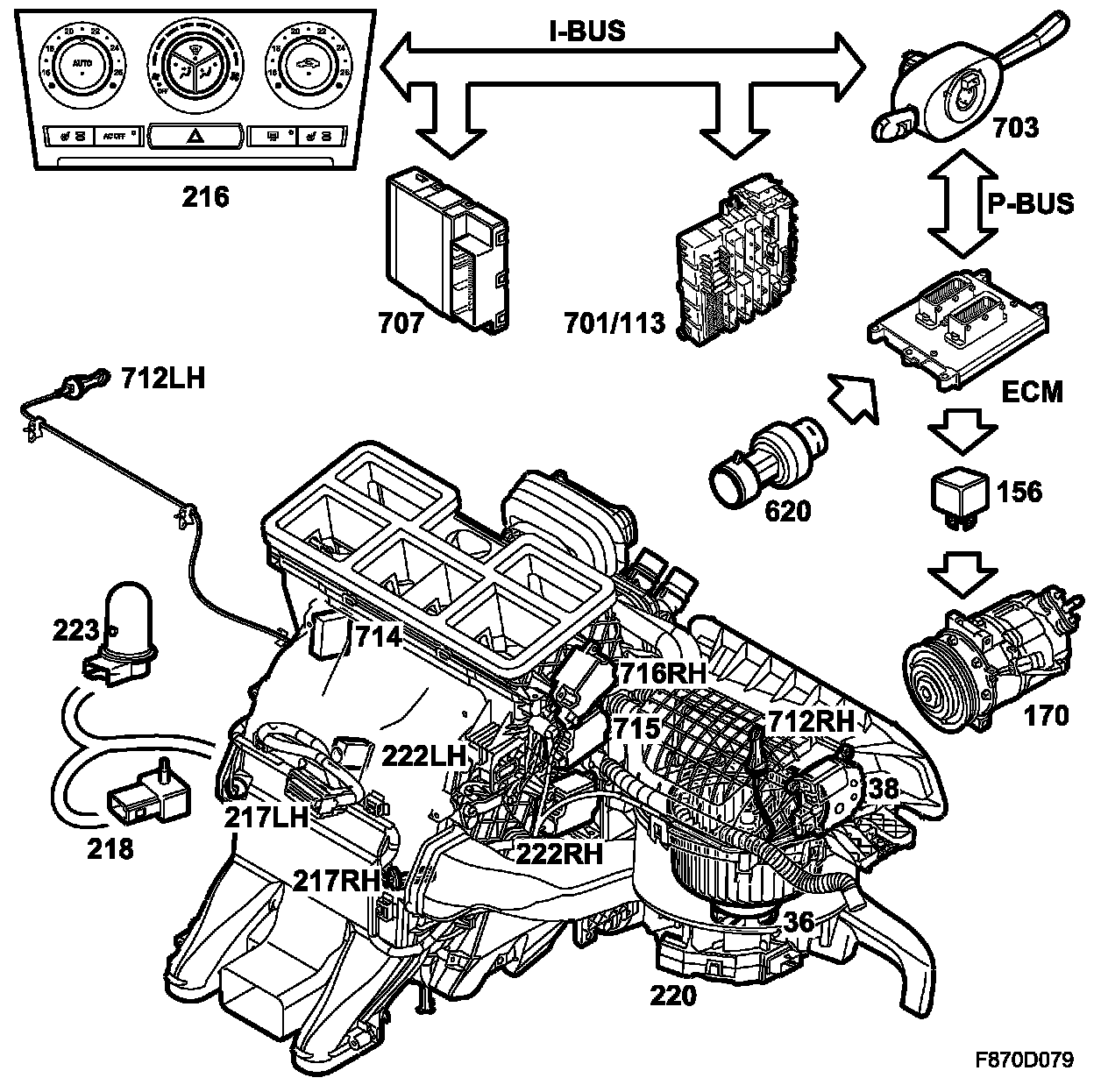 Two stepping motors are used to regulate cabin temperature in each temperature zone. The stepping motors are connected to dampers which mix warm and cool air. The heating and ventilation unit contains separate dampers for air distribution to the defrost, floor and panel vents. Each damper is rotated with a stepping motor that is supplied with power by the control module. This design allows air flow to all distribution points simultaneously. When the driver zone requires warmth, defrost+floor is selected; when cooling is required, the panel damper is also opened. When the car is started in cold weather, defrost is selected initially.