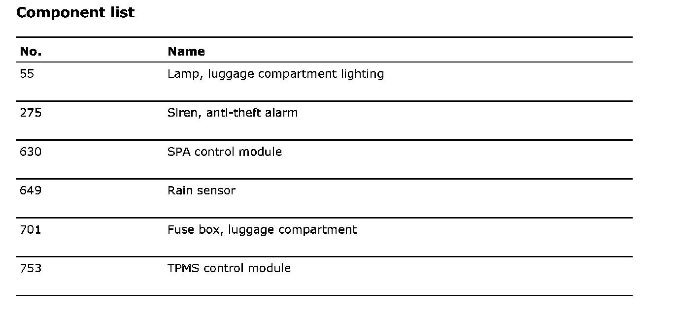 Component list: