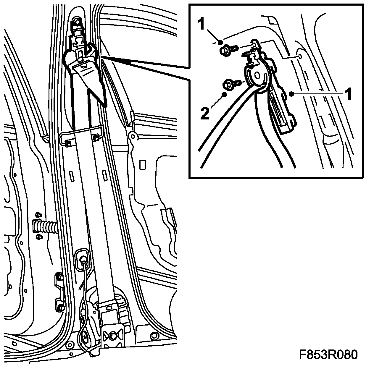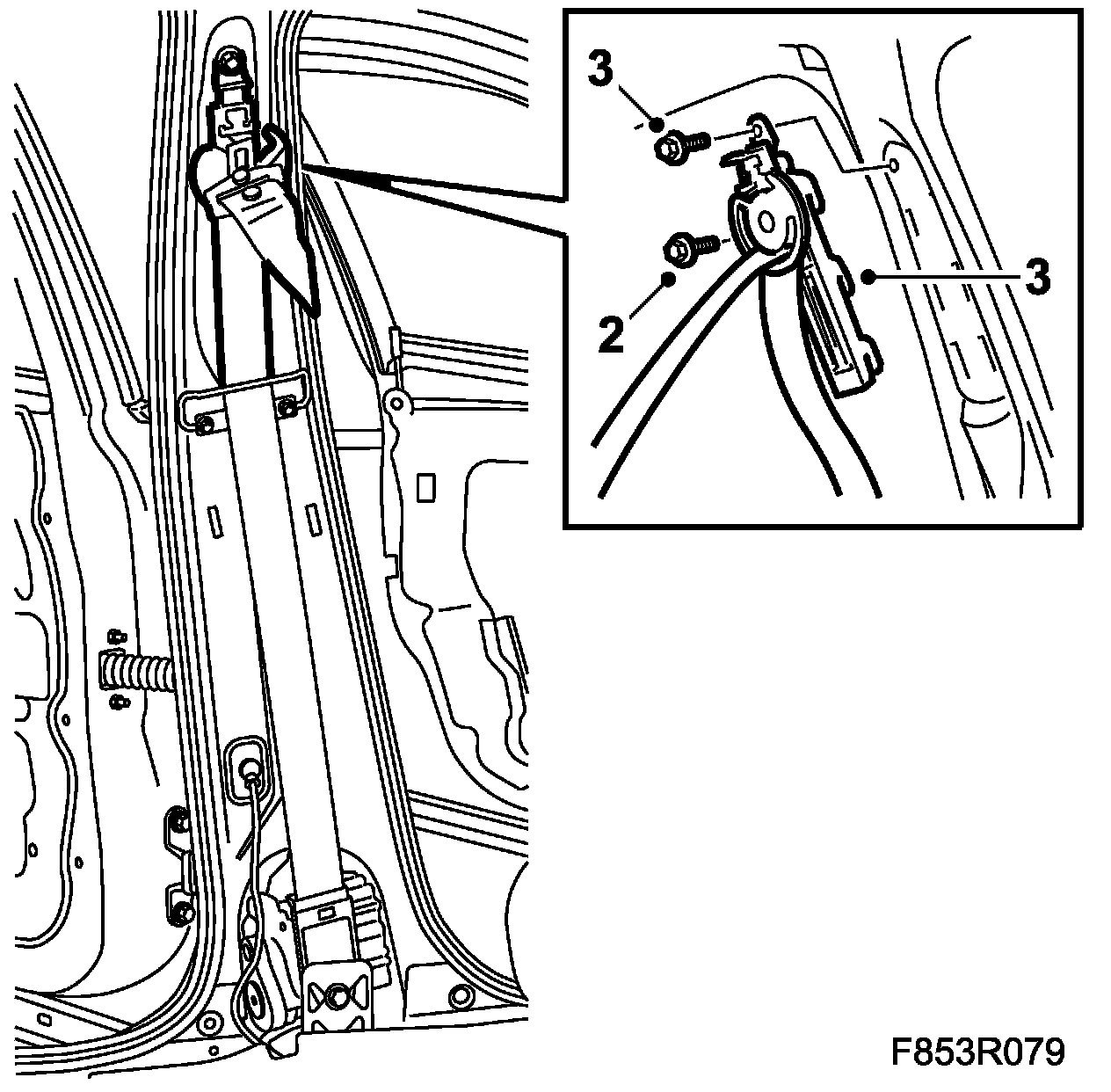 1. Put the seat belt's height adjustment into position and fit the screws.
