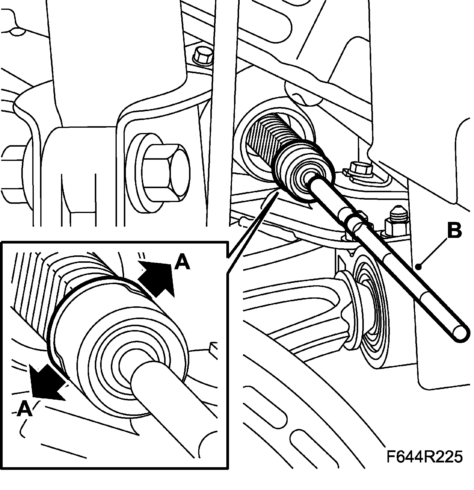 3. Bend up the lock tabs (A) and remove the track rod (B) using tool KKM-6247 Special wrench or a 32 mm crow's foot wrench.