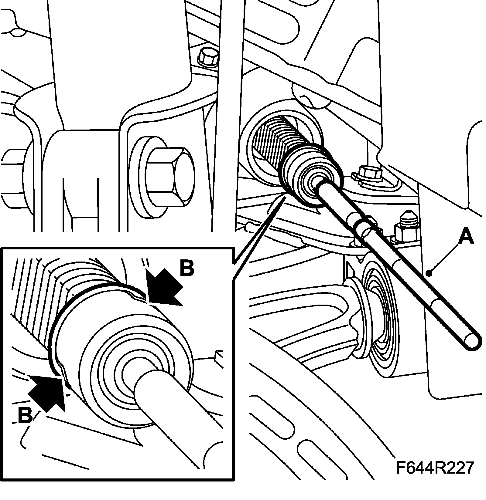 2. Fit and fasten the track rod (A). Bend in the lock tab (B) toward the inner ball joint.