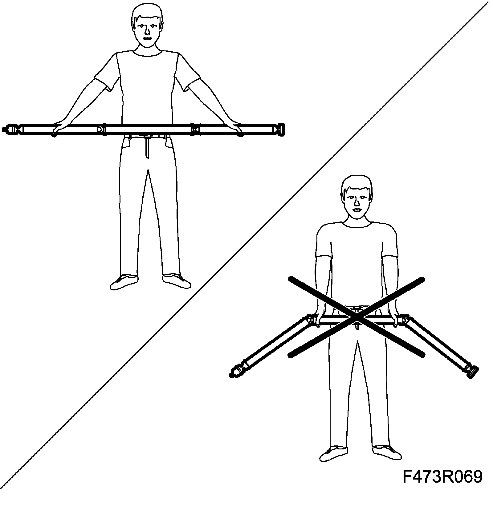During manual handling, the propeller shaft must be lifted at the front and rear sections in order to prevent the ties from being damaged due to being bent too forcefully.