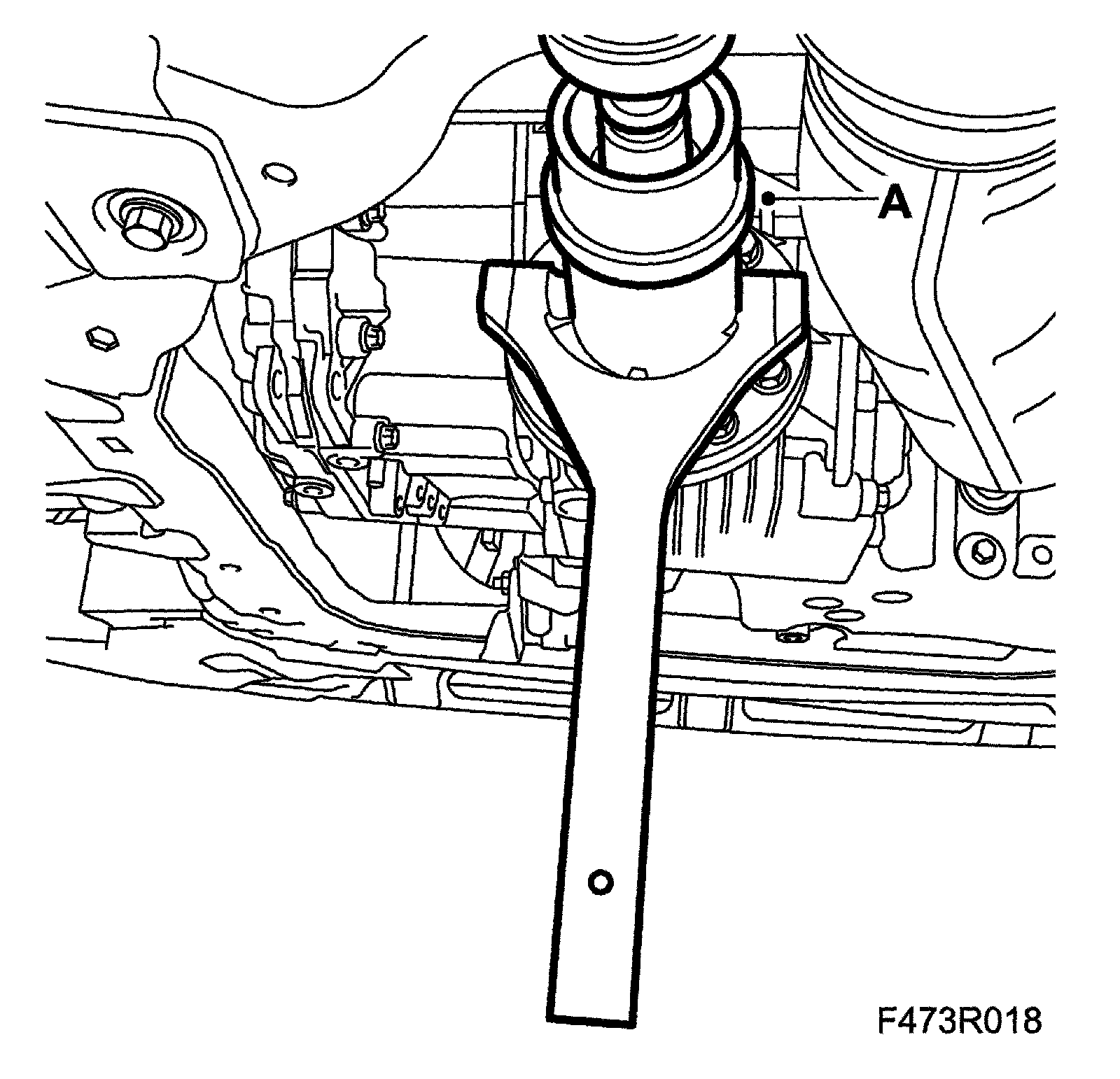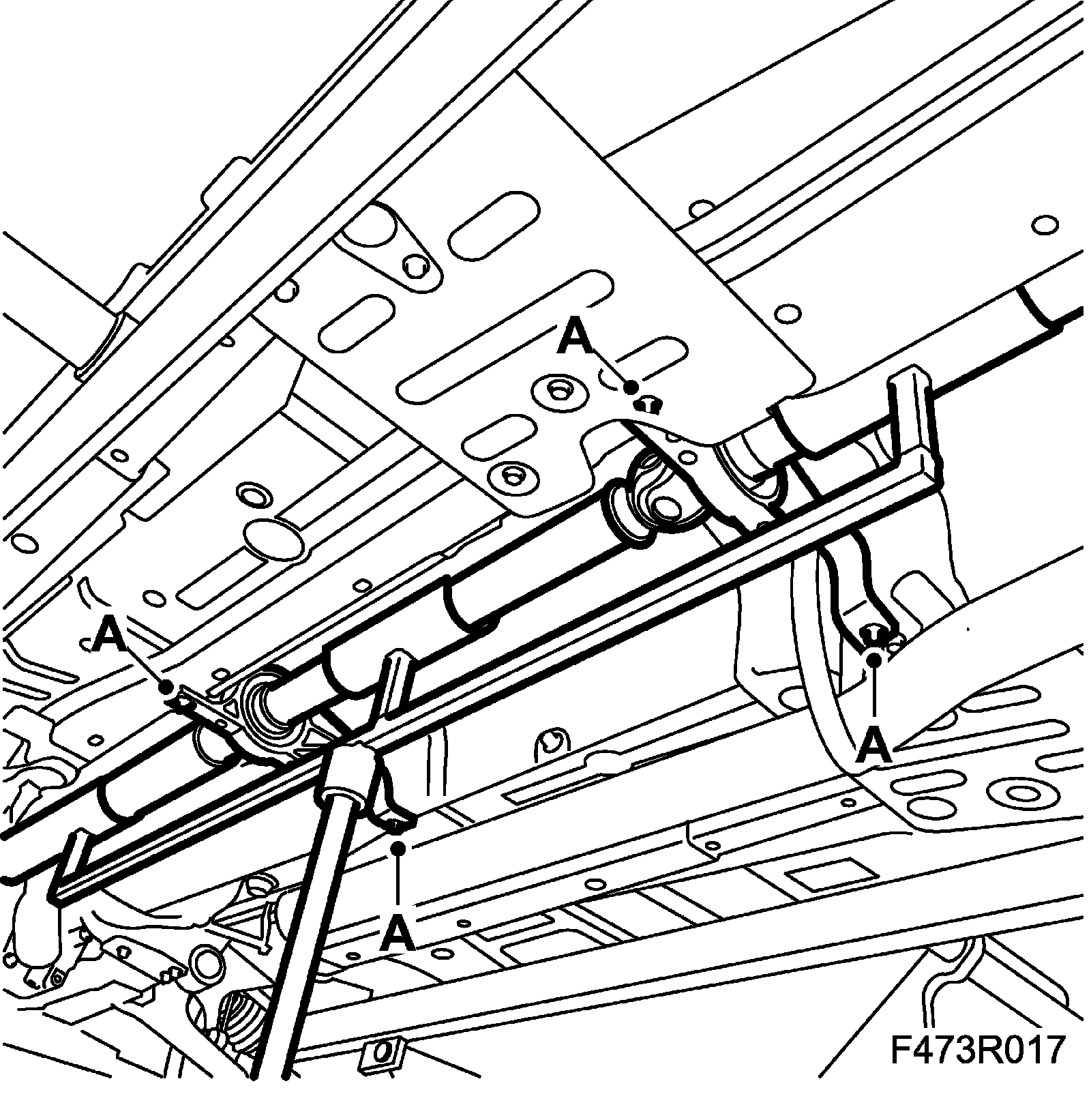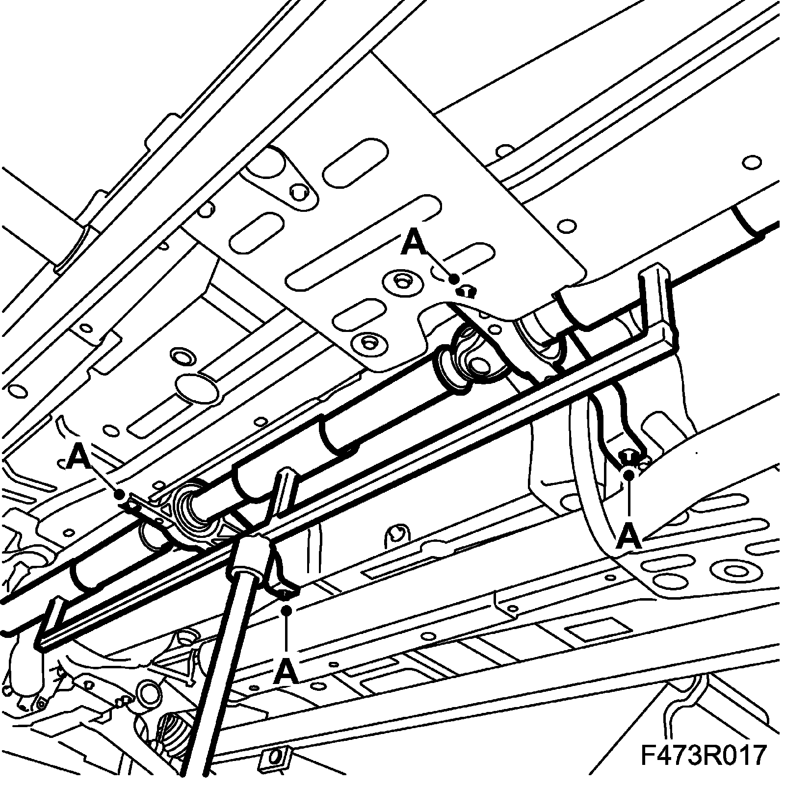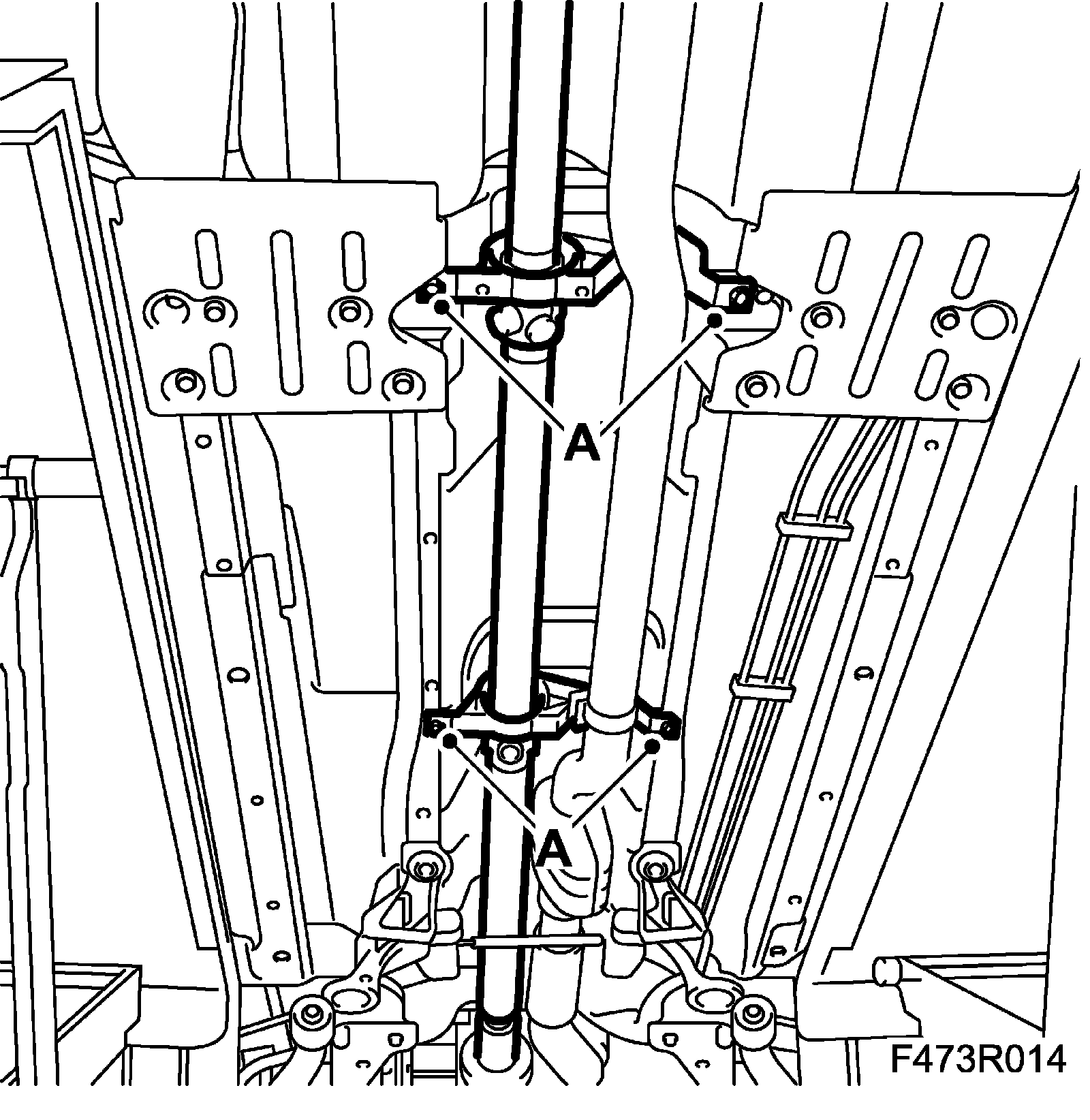 6. Remove the mountings (A) and allow the propeller shaft to rest against the column jack and DT49035 Holder, propeller shaft.