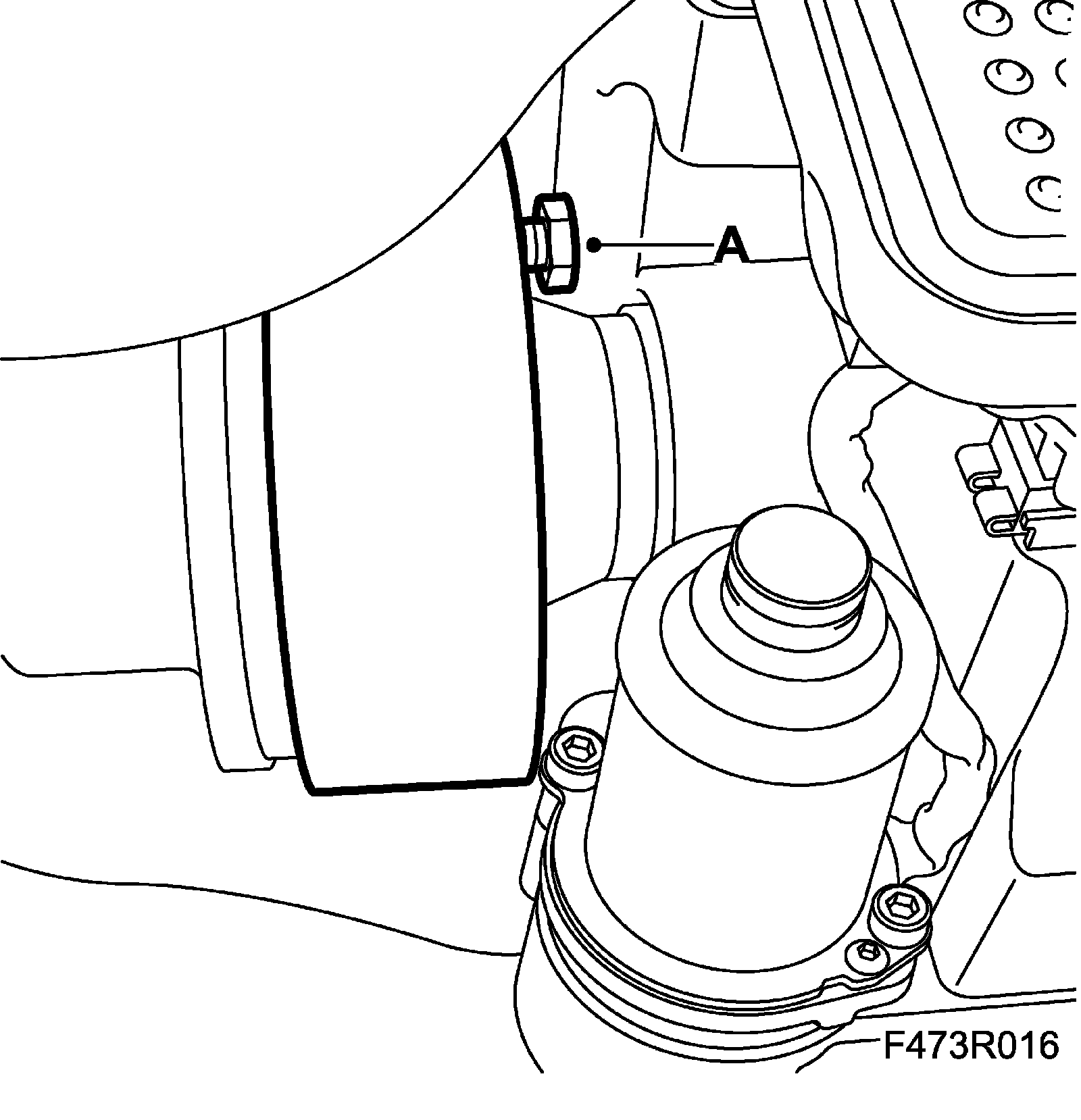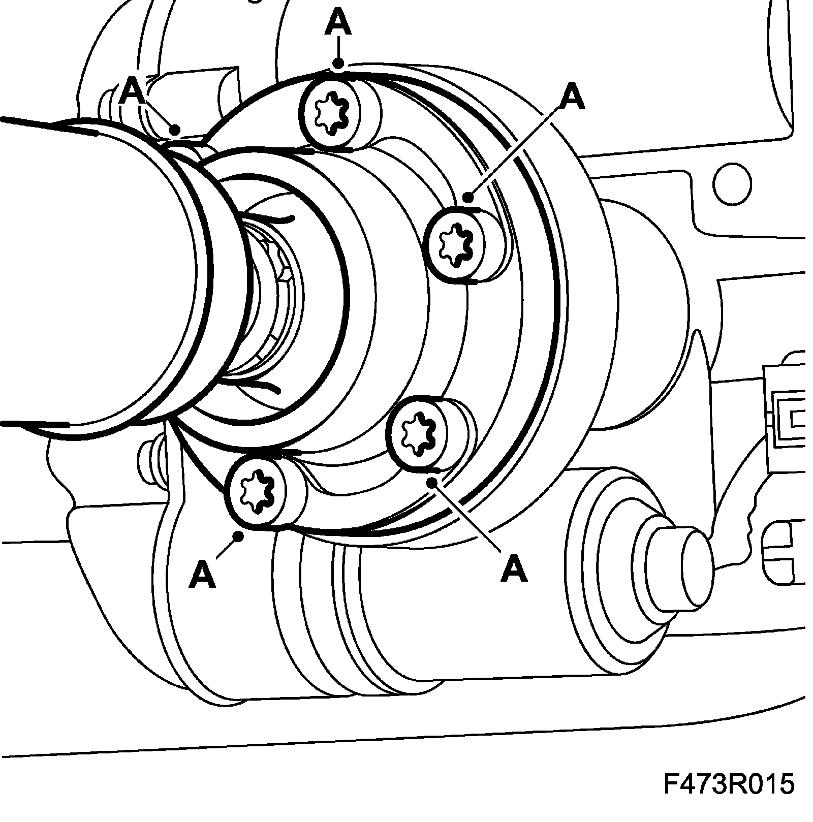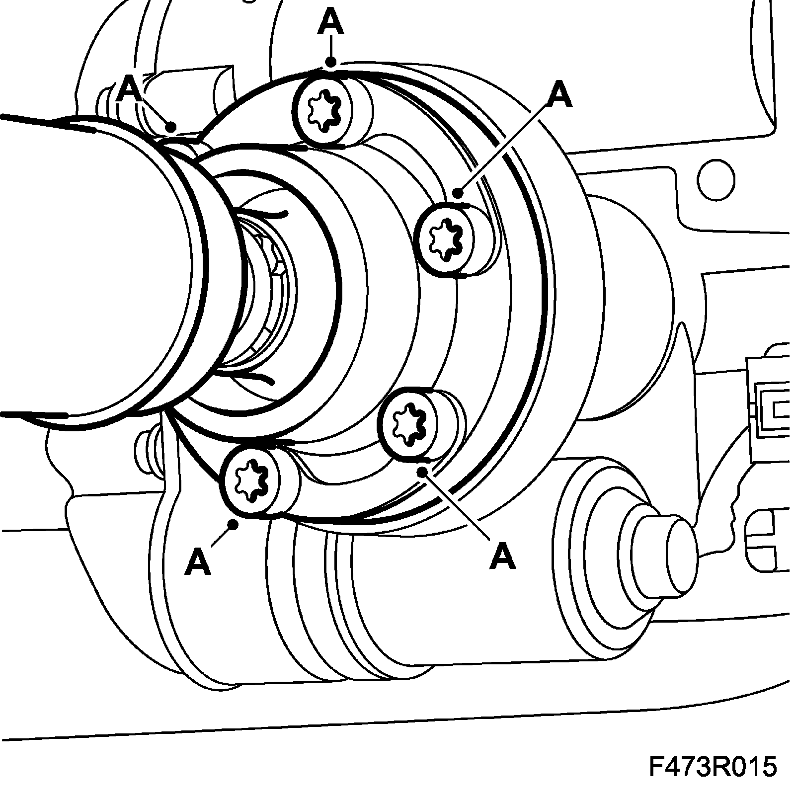 5. Fit the propeller shaft's bolts (A) to the differential clutch, use DT-49147 Support to hold the joint. Use new bolts and Thread locking adhesive, Loctite 242.