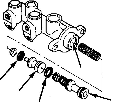 6. Lubricate master cylinder bore with clean brake fluid.