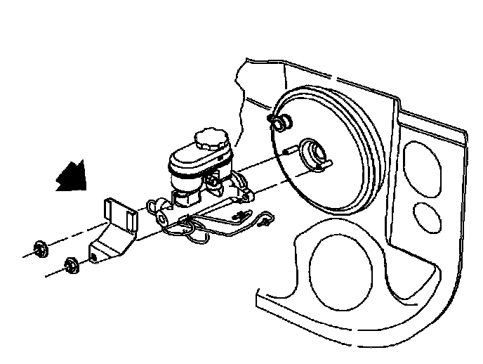 4. Remove two master cylinder-to-brake booster attachment nuts.