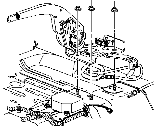 11. Remove three J-nuts from park brake lever assembly. Save nuts to use on new assembly.