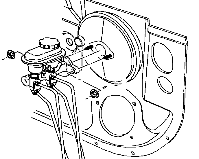7. Move master cylinder control assembly away from booster, far enough that brake booster can be removed.